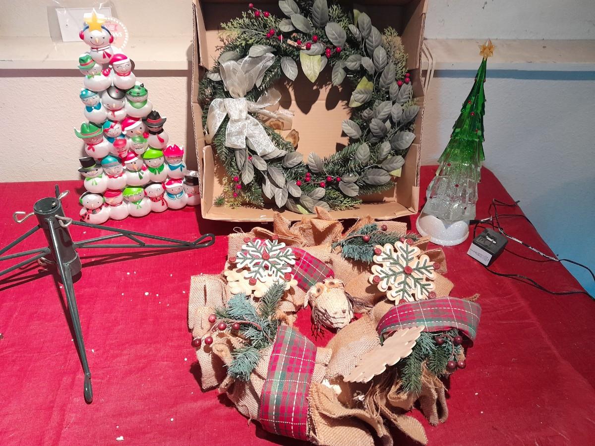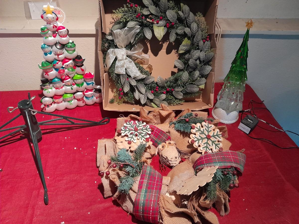 CHRISTMAS WREATHS, LIGHT UP TREE, SNOWMAN TREE, AND MORE