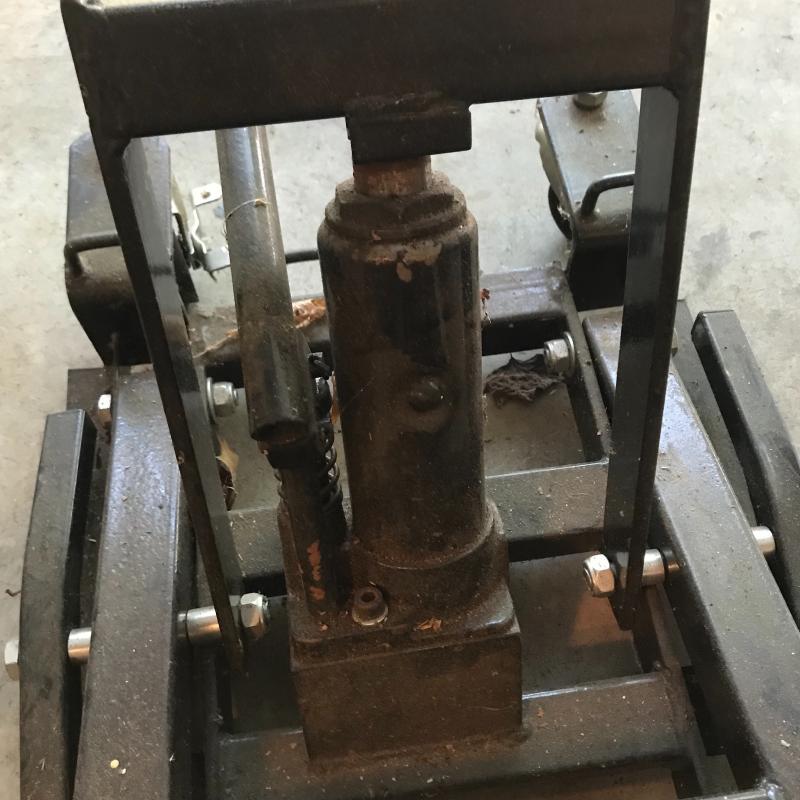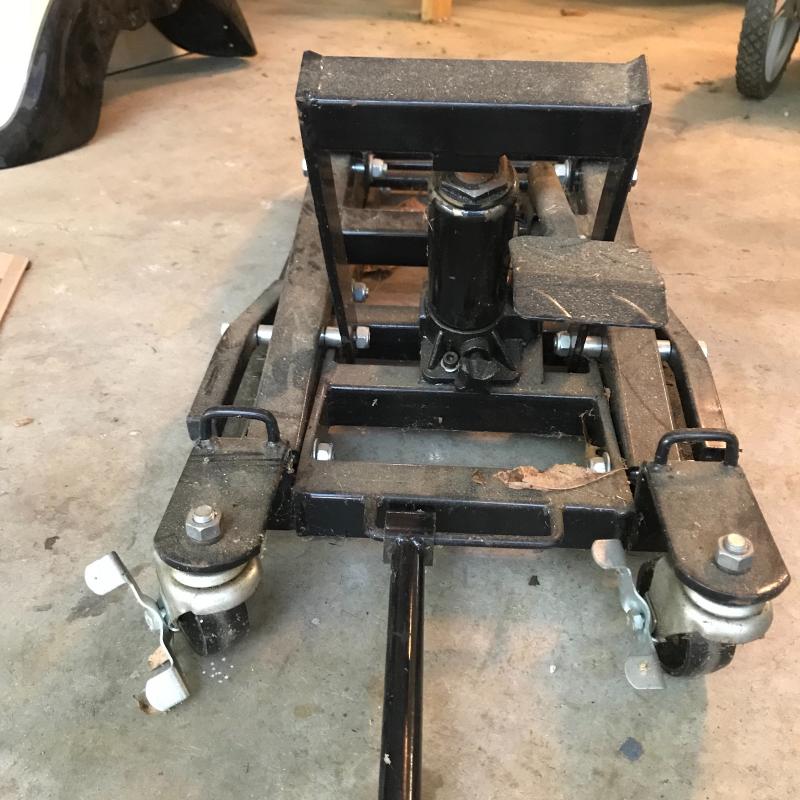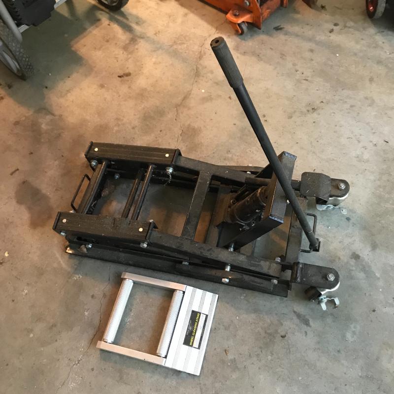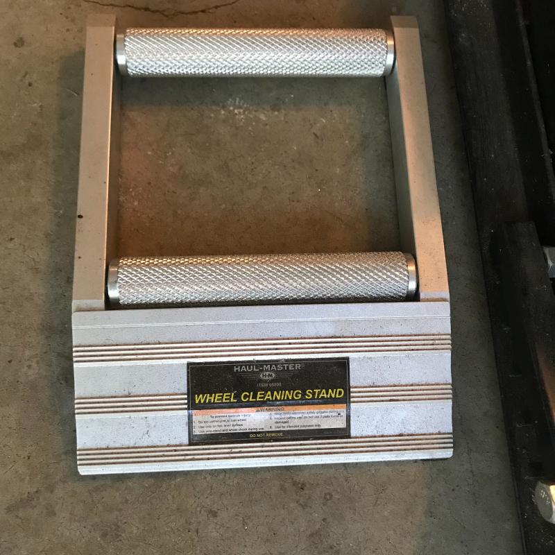 Haul Master wheel cleaning stand in great shape accompanied by a motorcycle jack/lift (unknown manufacturer and stats). Jack appears dirty, but in decent shape, see photos. Local pick up only.