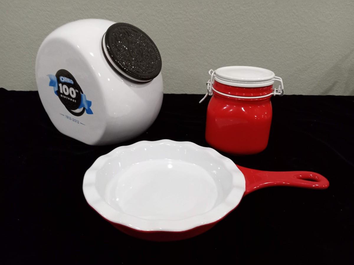 LOT 310 OREO COOKIE JAR, SMALL SKILLET AND CANISTER
