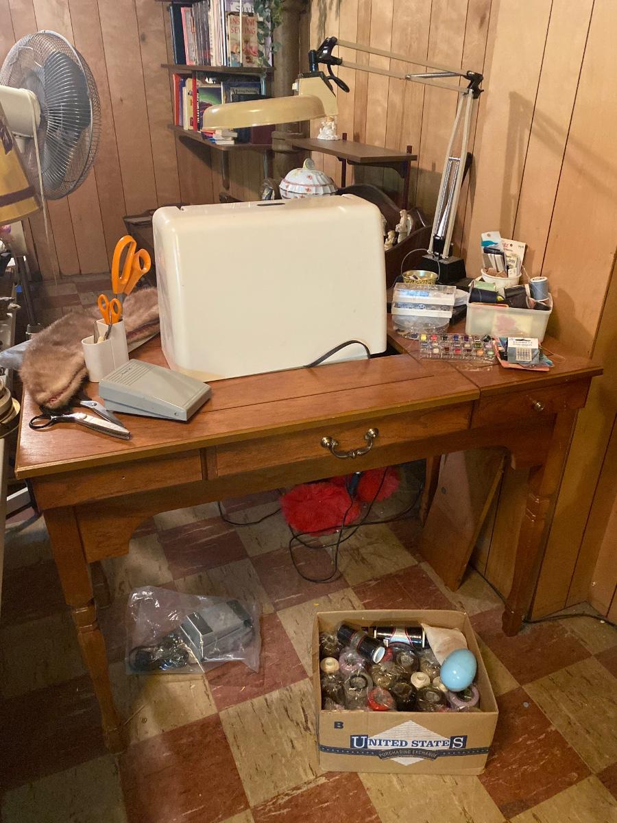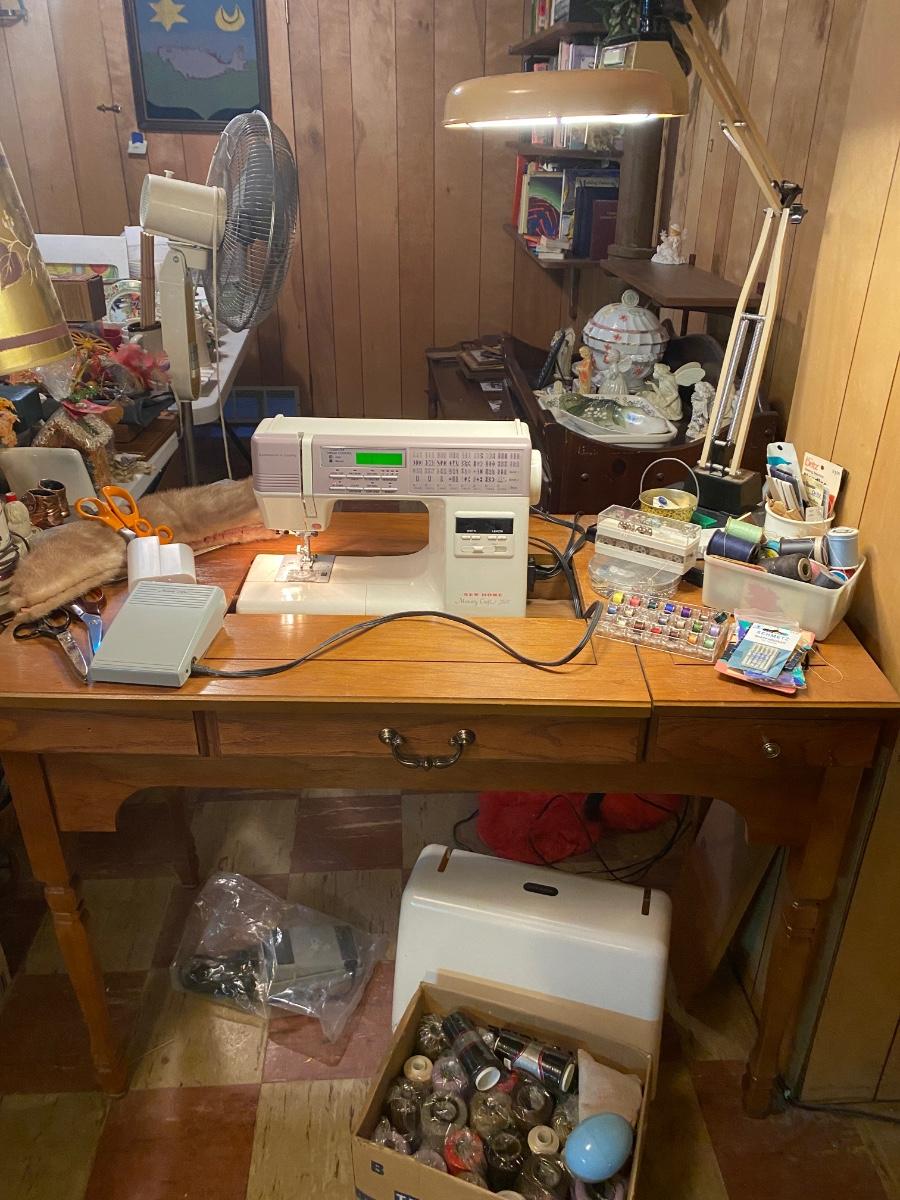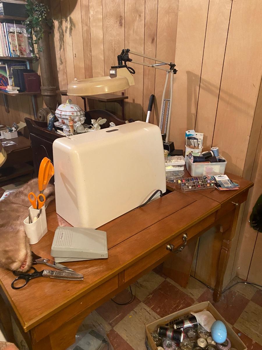 Large lot including New Home sewing machine, table, magnifying light and more. Please see all pictures as they are the best representation of the items. The pictures show condition, measurements if taken, and what is included in the lot. Due to the large amount that we photograph and the time frame, we are not always able to take measurements. All items unless noted, are pre-owned and have been used. If you purchased furniture, you must bring help. We do not allow one person to carry large furniture out on their own. Bring help, tools and a truck for the safety of our client’s homes, and your personal safety. Any damages that result to the property including walls, and floors due to moving of the furniture will be charged to the buyer. Company policy. Thank you