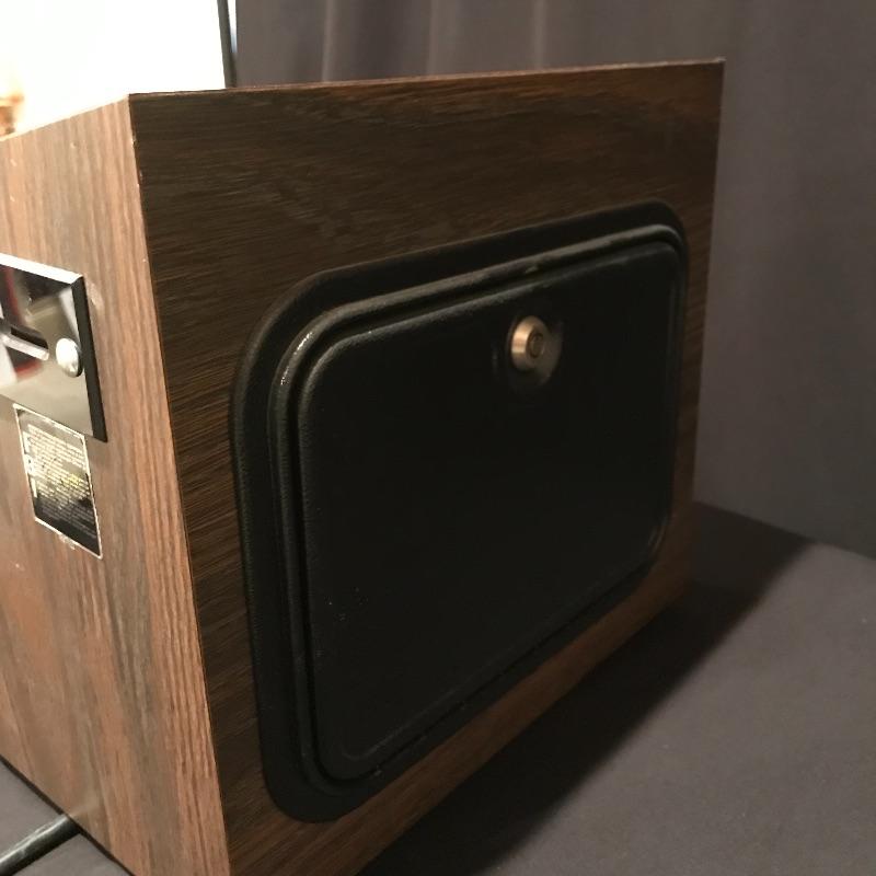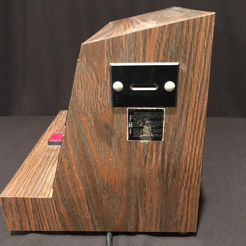 Vintage wood laminate poker machine is for amusement only. It accepts only quarters and turns on when plugged in, but function is not verified. Copyright date of 1986. There is a lock on the back, presumably to remove spent quarters, key not included. Game is heavy and measures approximately 12.75” x 10.75 x 11.75”. No shipping.