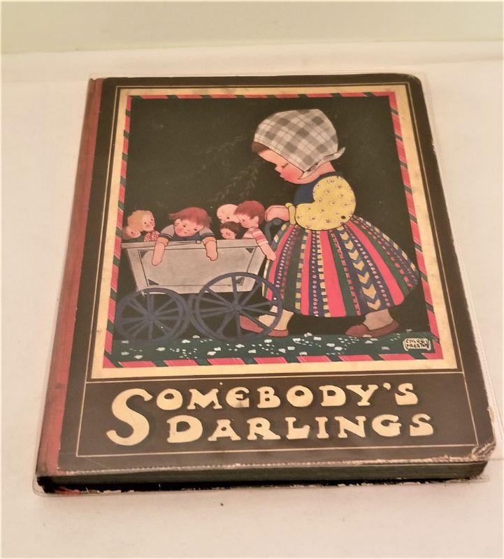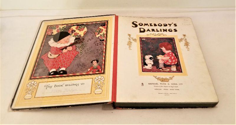 This one is a real beauty. Somebody's Darling: A book for very small people - Raphael Tuck & Sons. Very early board book - the lithographs are amazing. Measures 8" x 10" - early 20th century. Super scarce in any condition.
