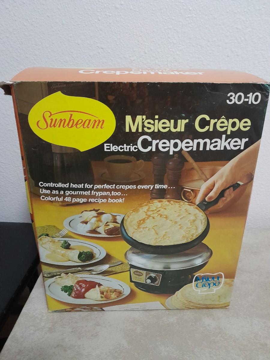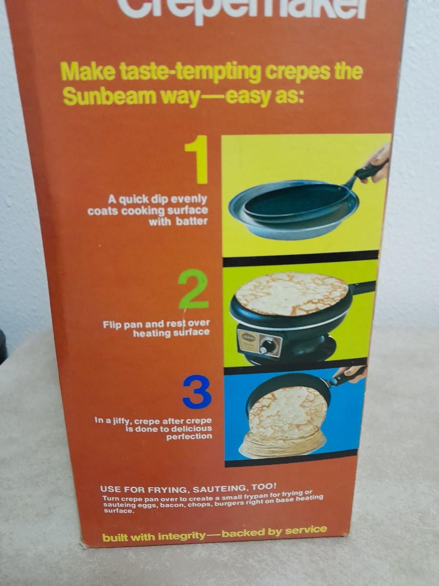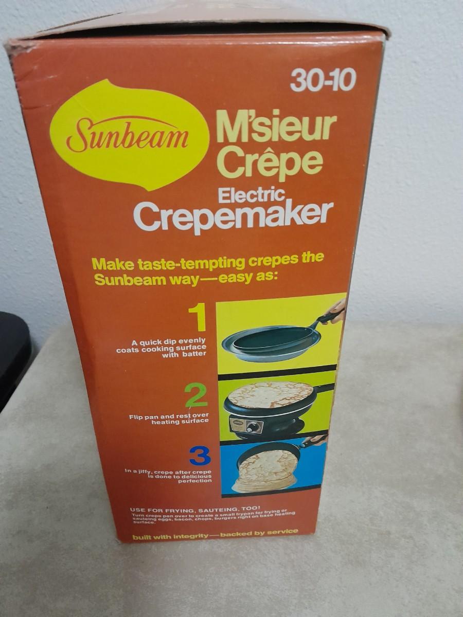 SUNBEAM M'SIEUR CREPE ELECTRIC CREPE MAKER AND PLASTIC EGG STORAGE CONTAINER