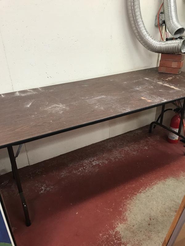 Three matching folding tables. One photographed has the most staining on top. Others are is better shape (just full of stuff at the moment) each measures 72” x30” x29”. Lot is available for local pick up in Asheville, NC only.