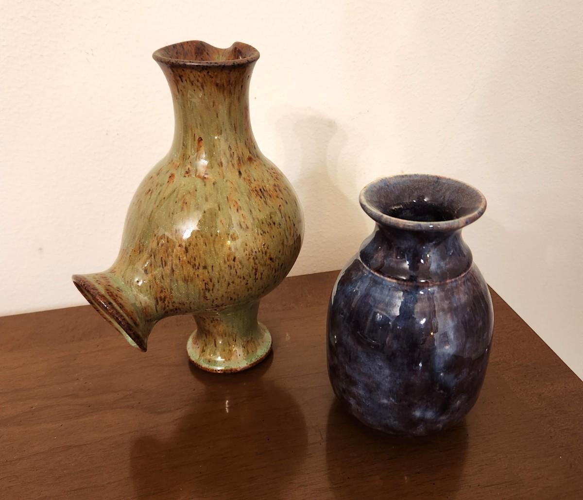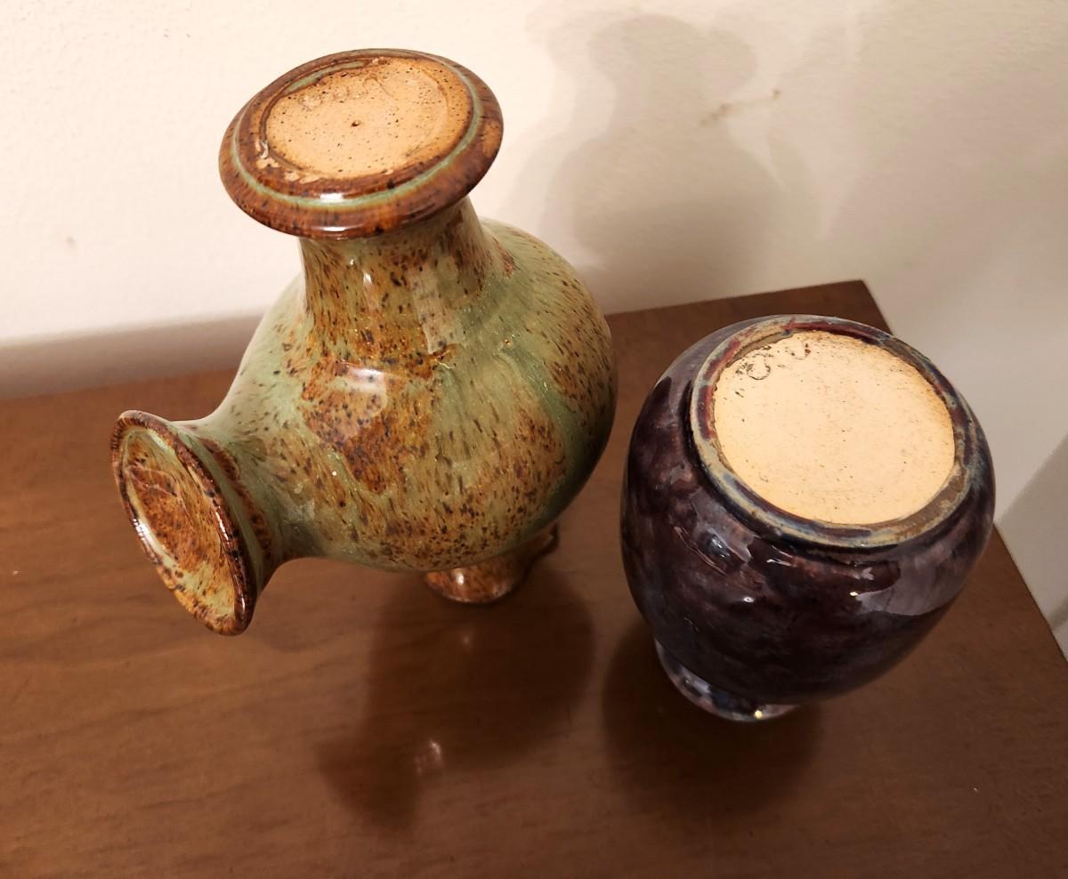 2 interesting pieces of Casey Williams (signed - Louisiana Artist) Studio Pottery - .larger is 8" tall, vase 6" tall.