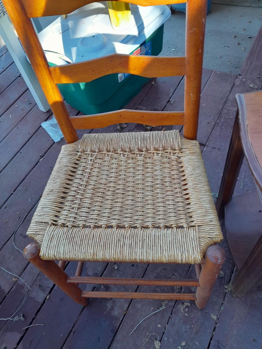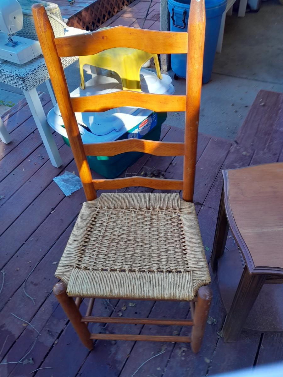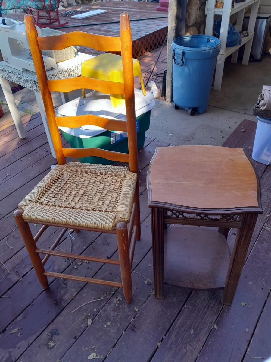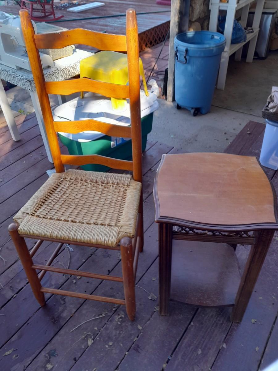 WOVEN SEAT CHAIR AND SMALL LANE TABLE 15" X 24"