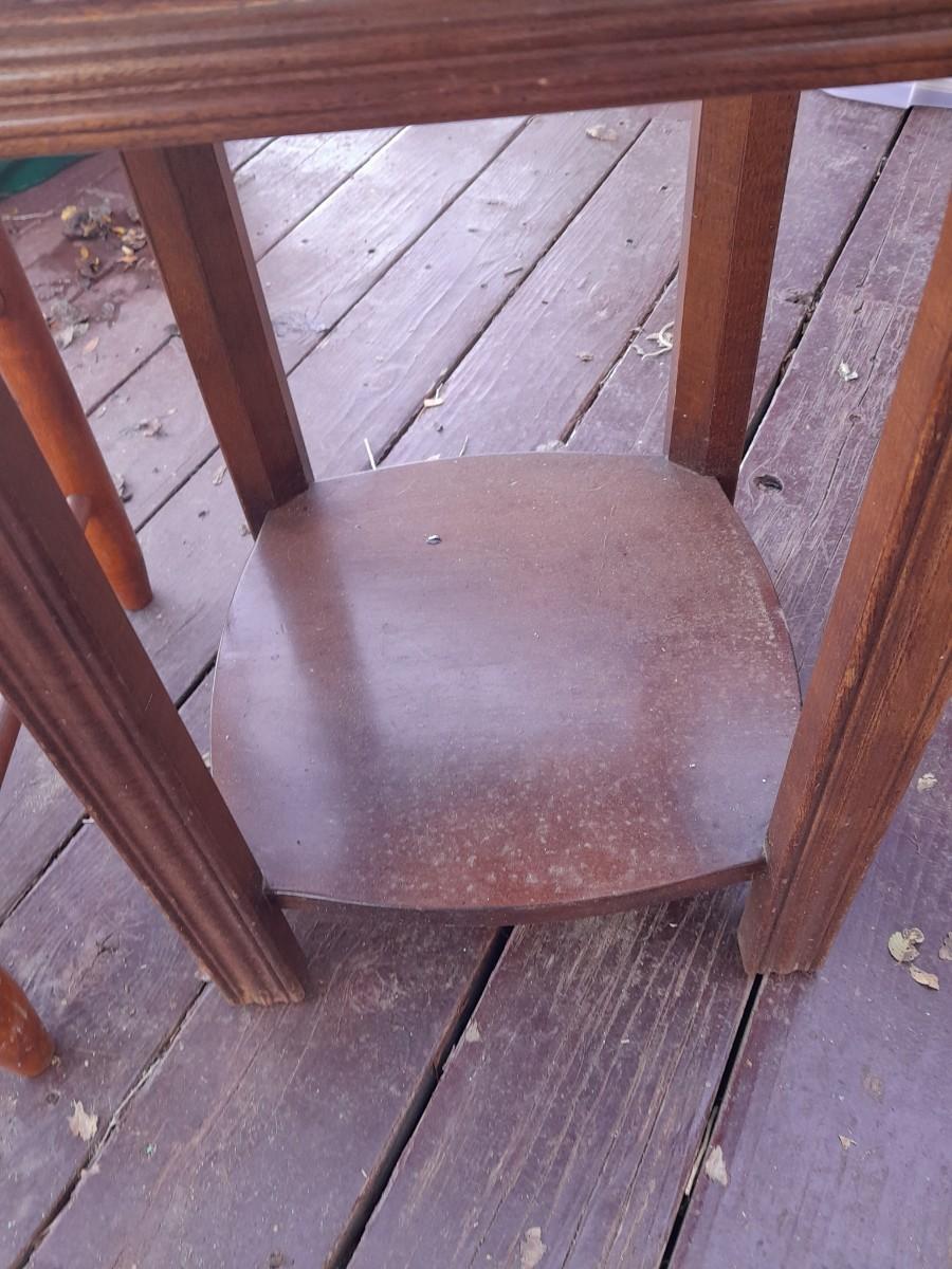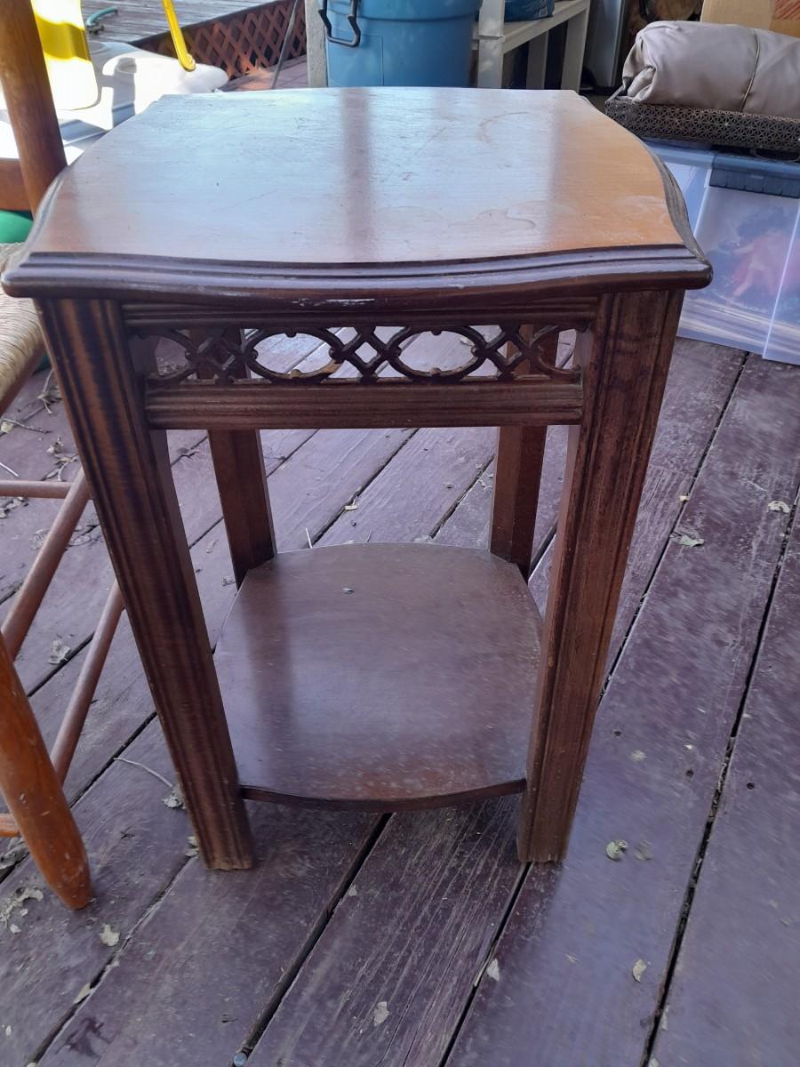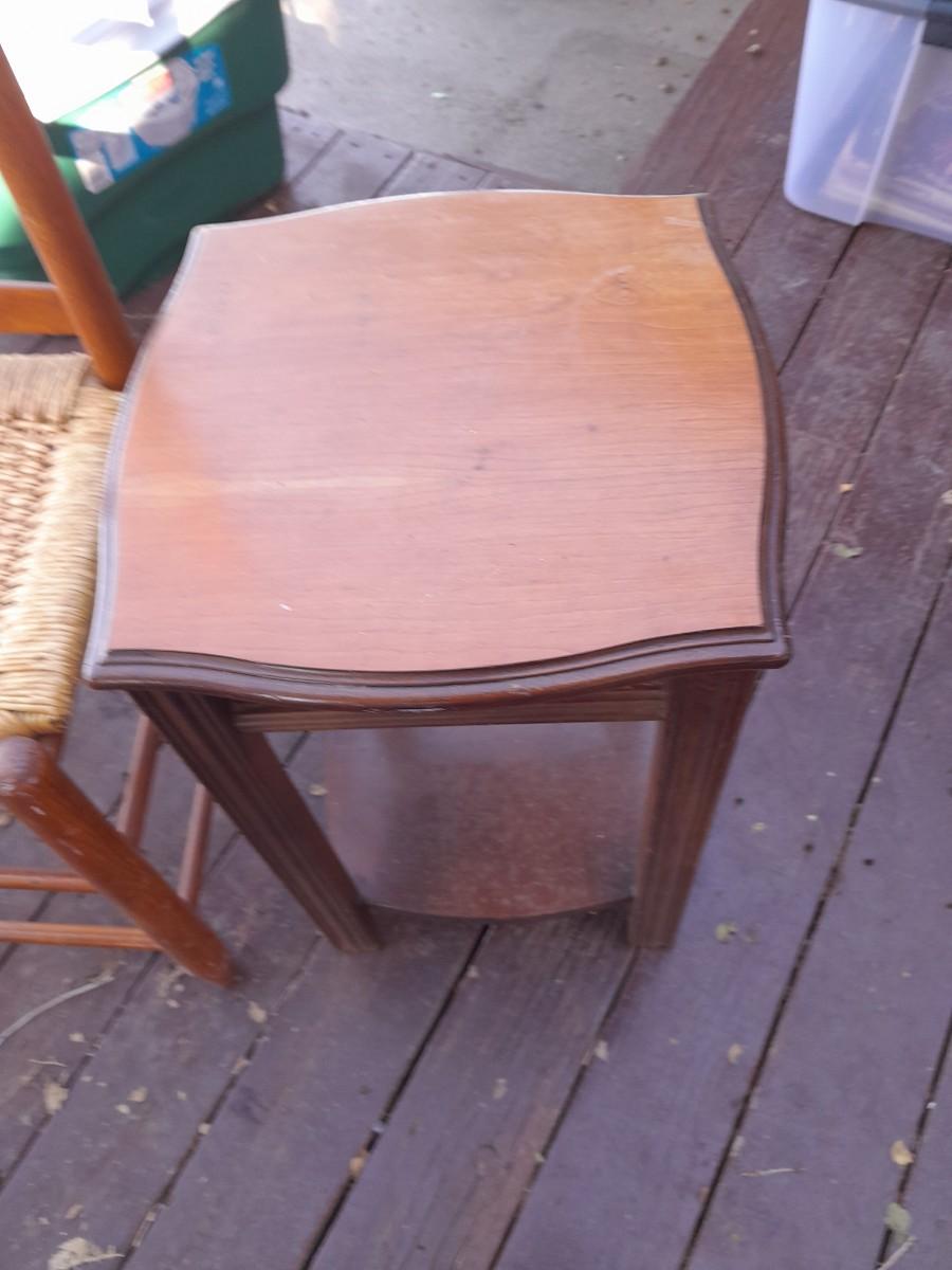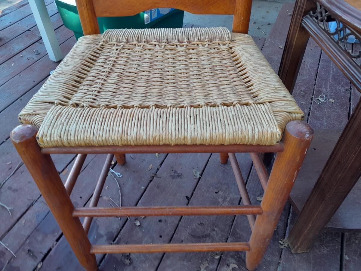 WOVEN SEAT CHAIR AND SMALL LANE TABLE 15" X 24"