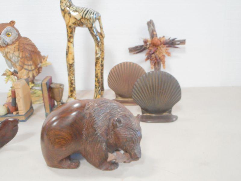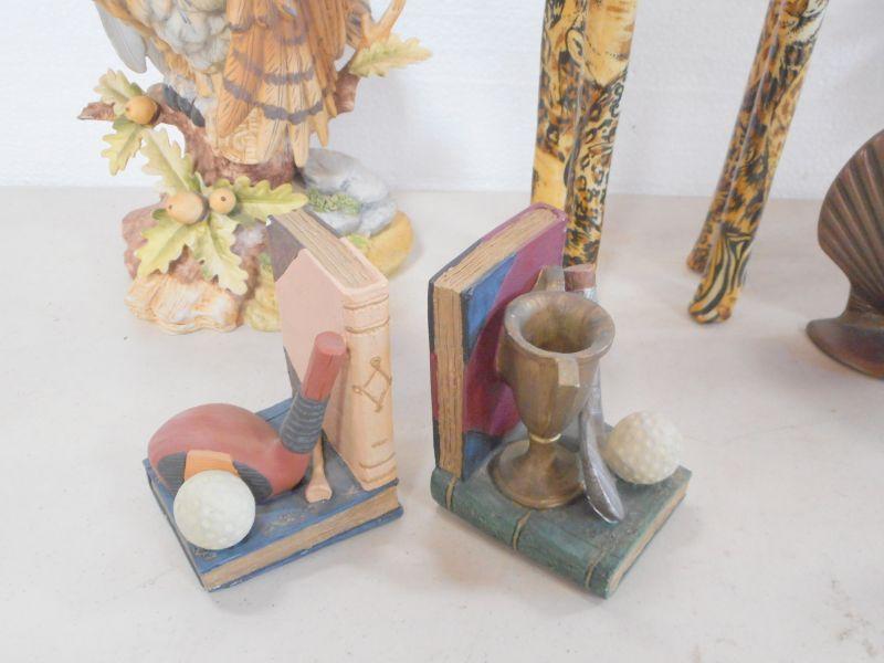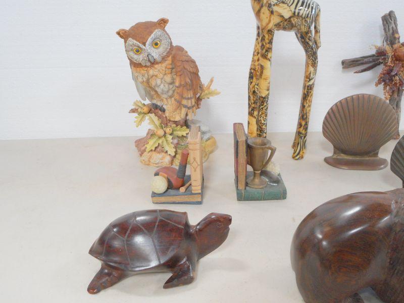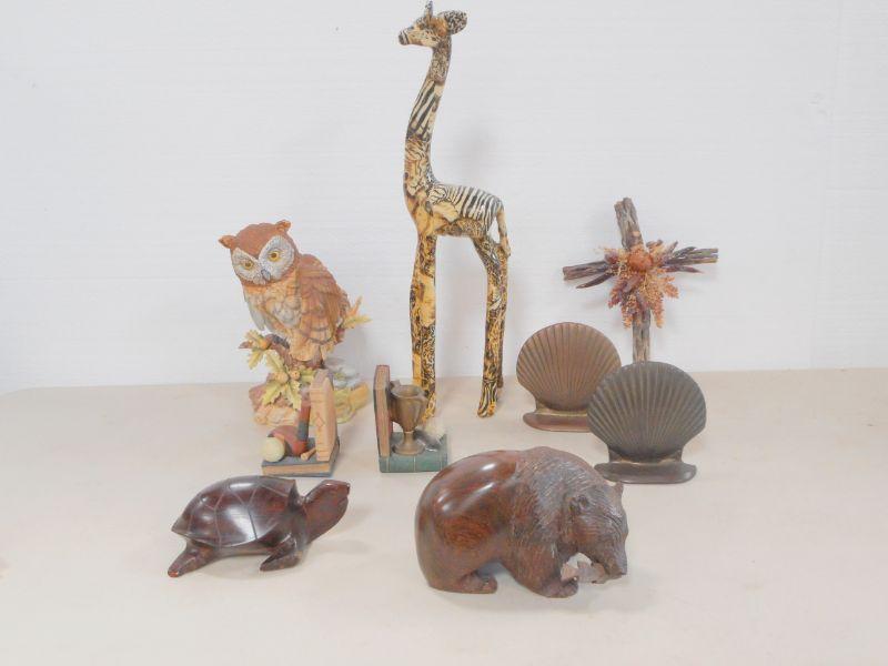 Lot 3109 - Home Decor Bookends + Wooden Figs