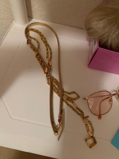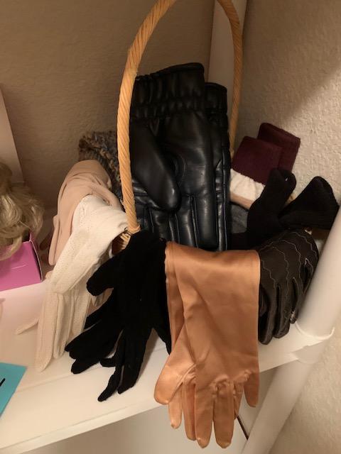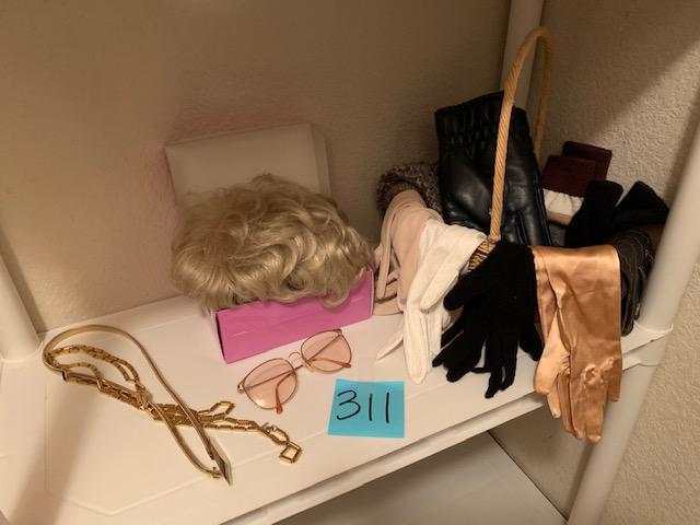 Ladies gloves, wig, belts, plus