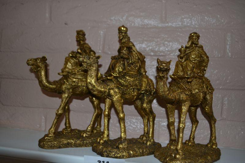 LOT 311 RESIN THREE WISEMEN FIGURINES ON CAMELS