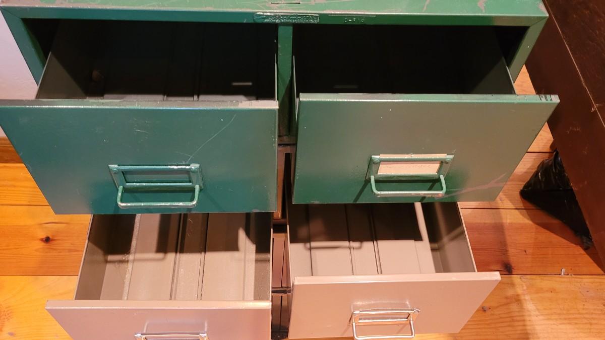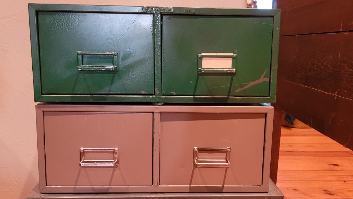 Lot 311: Green and Tan Desk Top File Cabinets