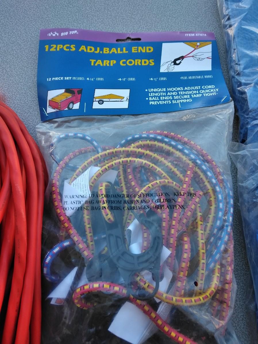 LOT 311 NEW TARPS, BUNGEE CORDS, EXTENSION CORD AND MORE