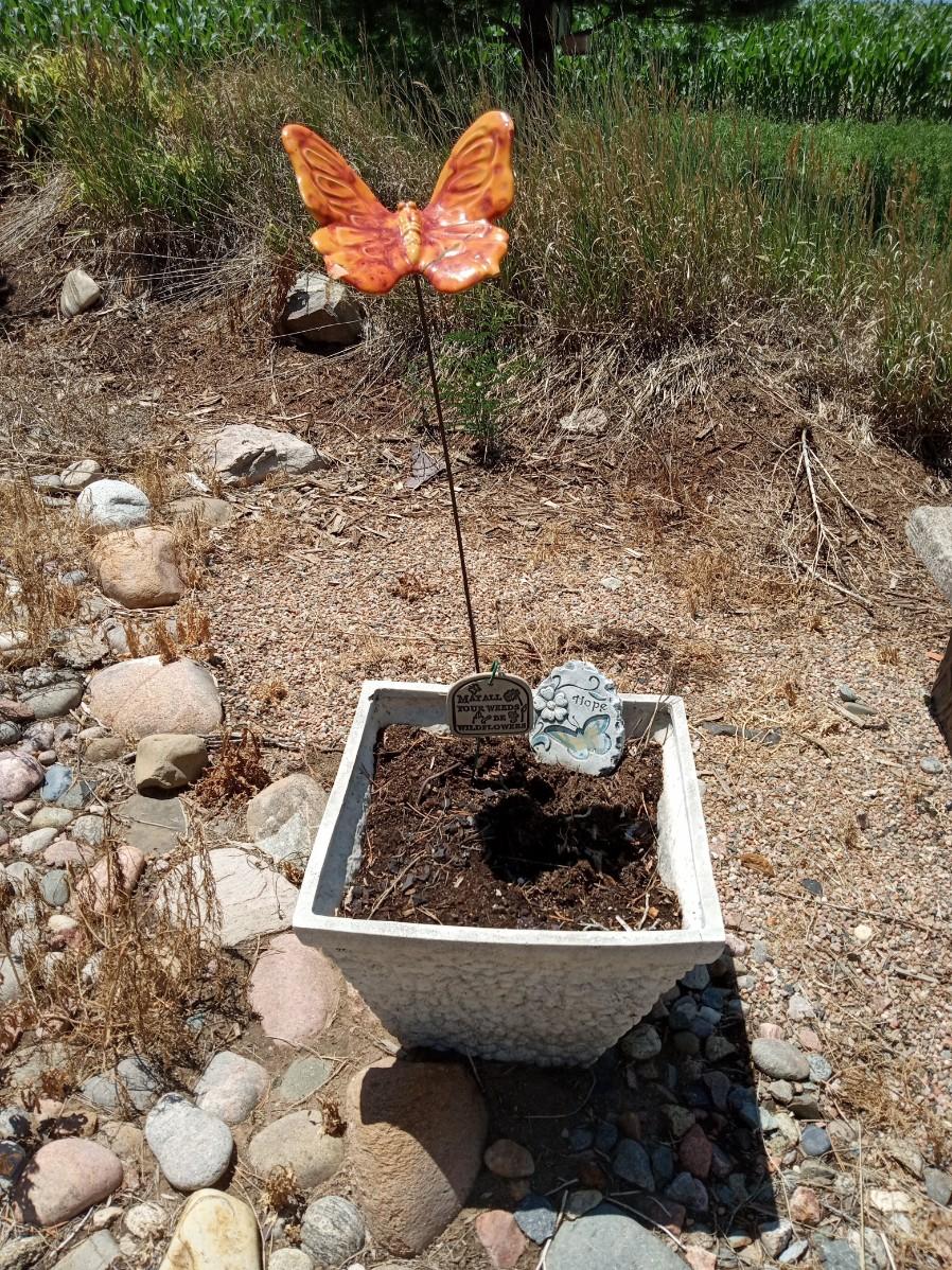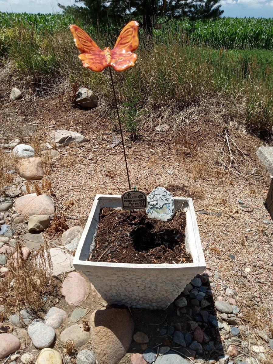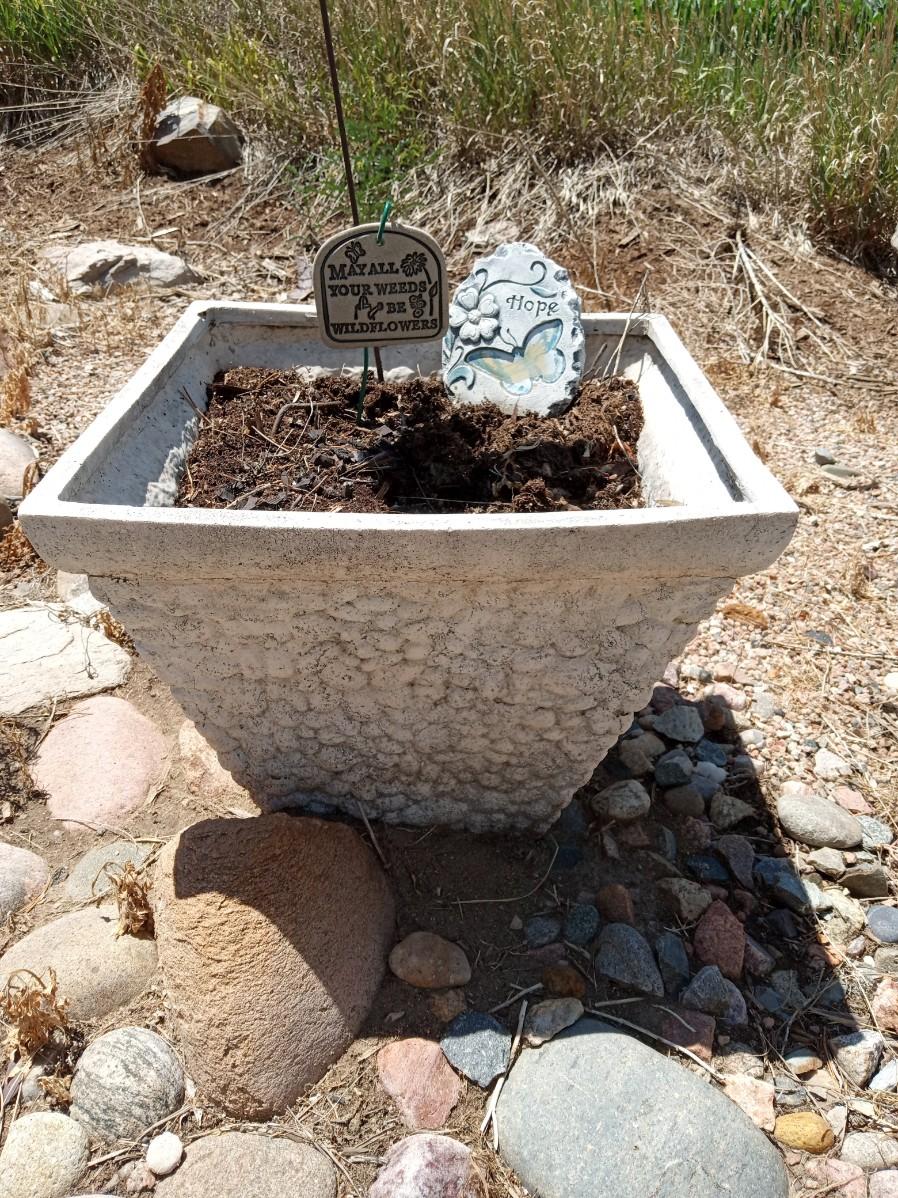 LOT 311  LARGE FLOWER POT AND YARD ART (OB)