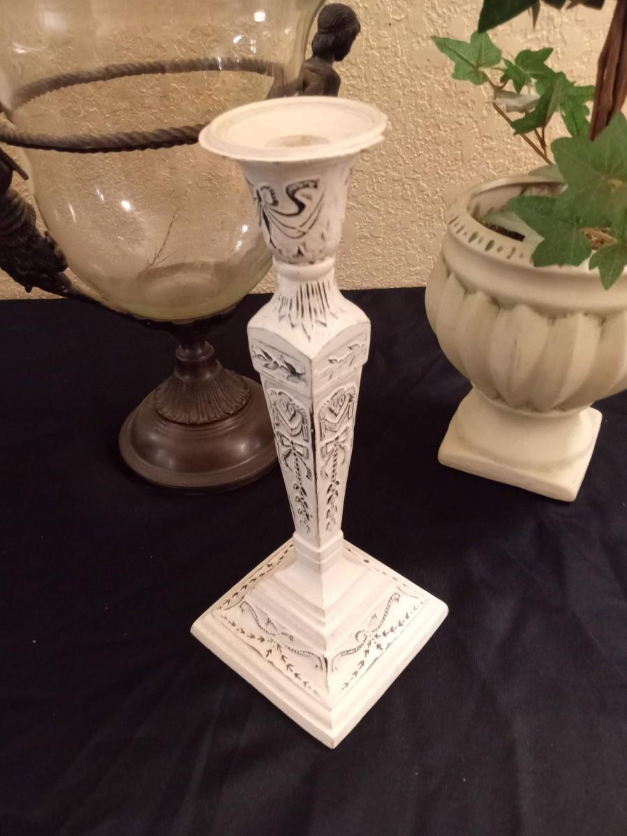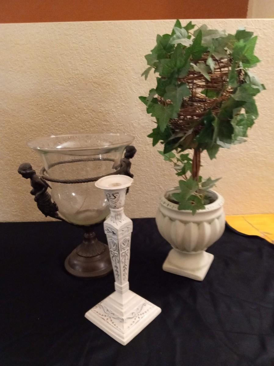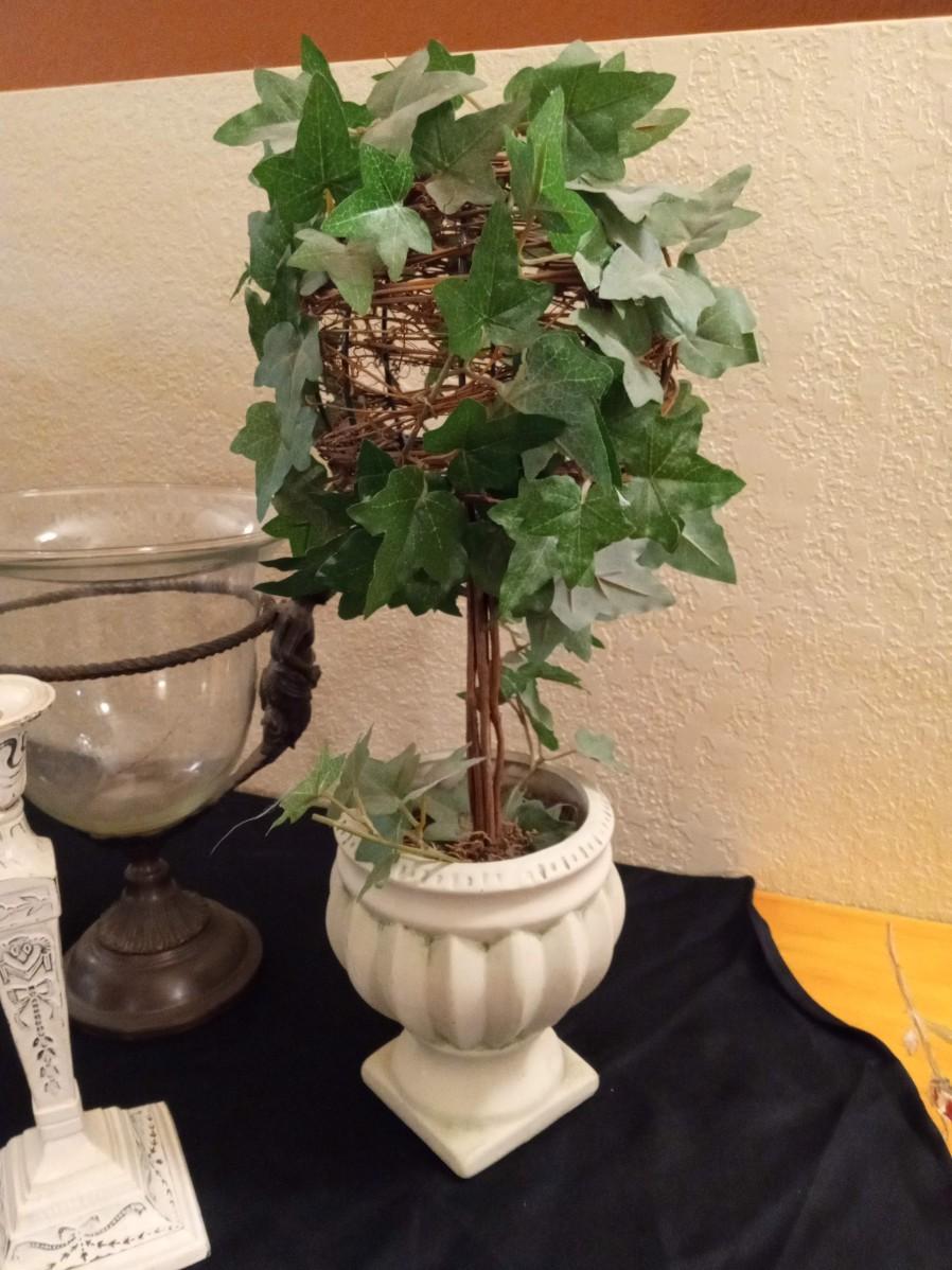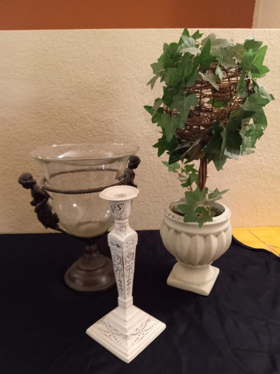 FAUX PLANT IN A PLANTER AND A METAL BUD VASE