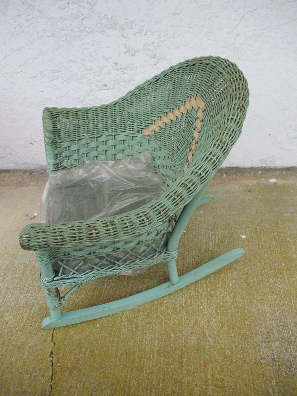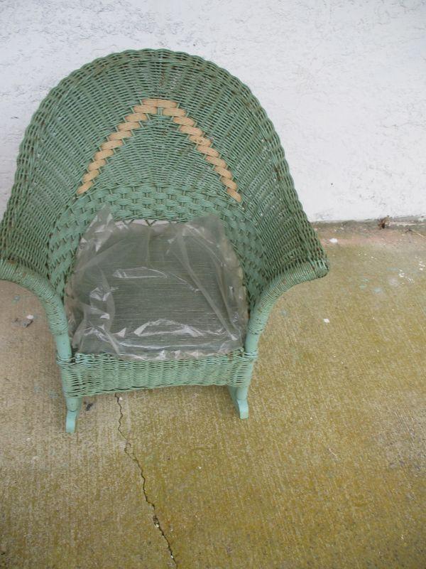 Lot 311 - Childs Wicker Rocking Chair With Cushion