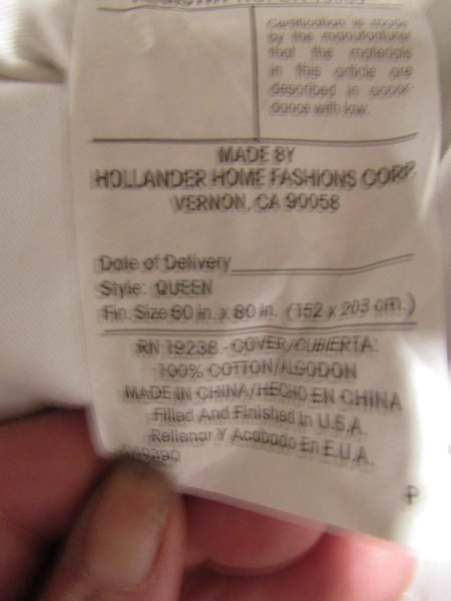 HOLLANDER HOME FASHIONS DOWN QUEEN-SIZE BED TOP..