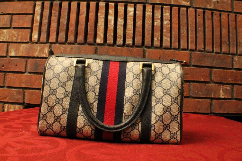 LOT #311: Gucciâ„¢ Drop Handle Purse (Red and Black Stripe)