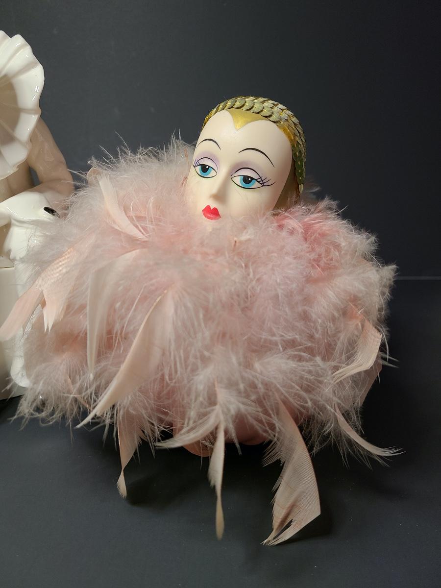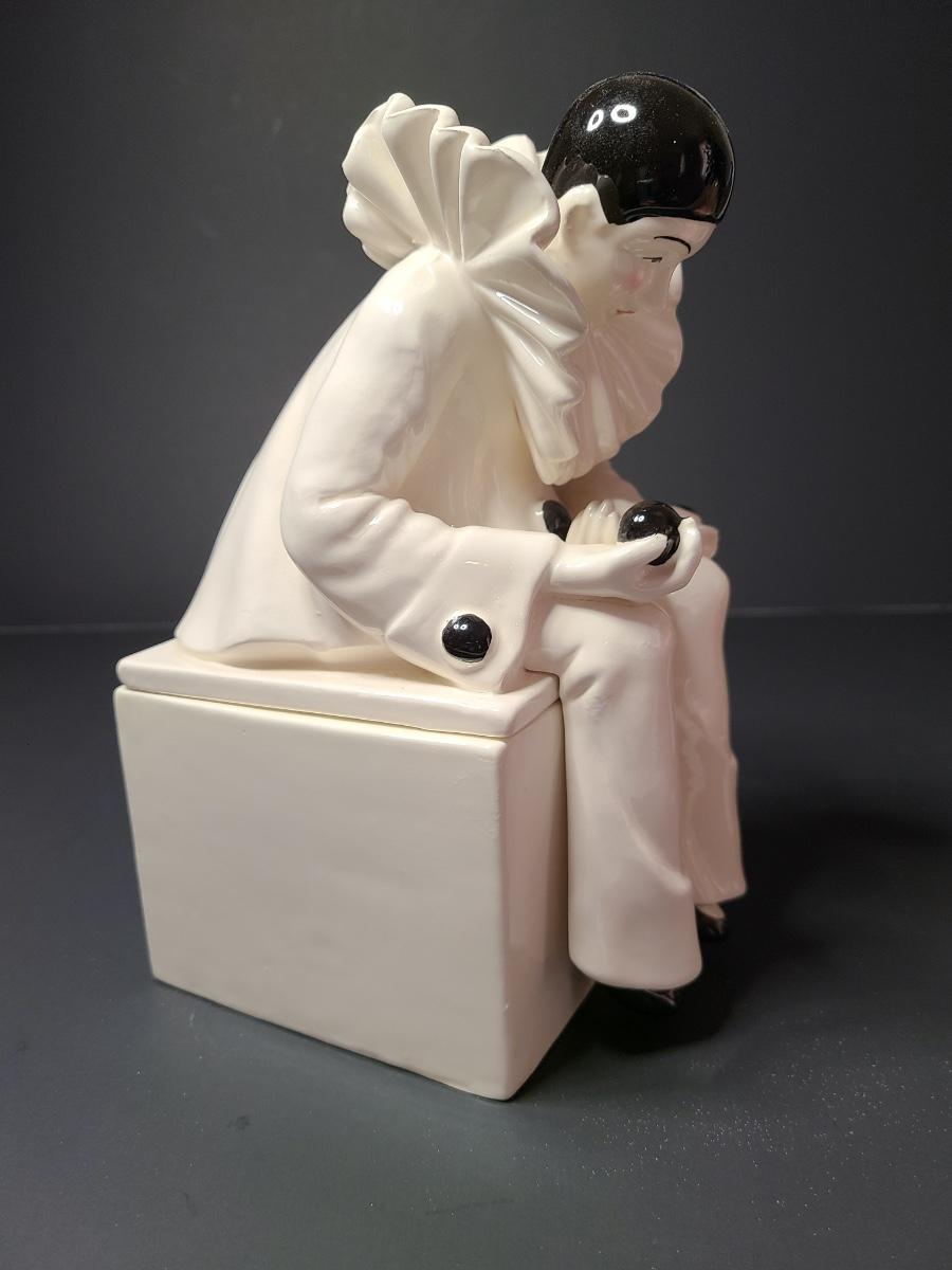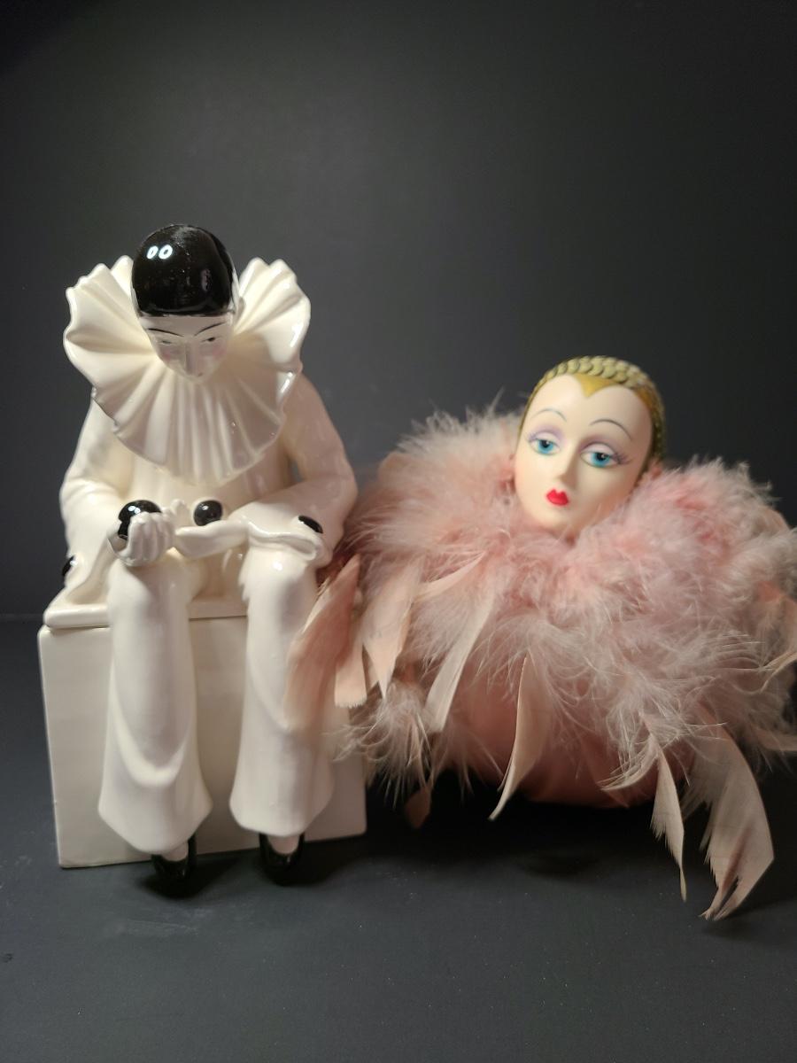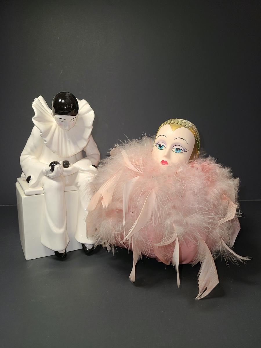 Lot 311: Vintage Harlequin Trinket Box & Musical Pin Deco Pin Cushion