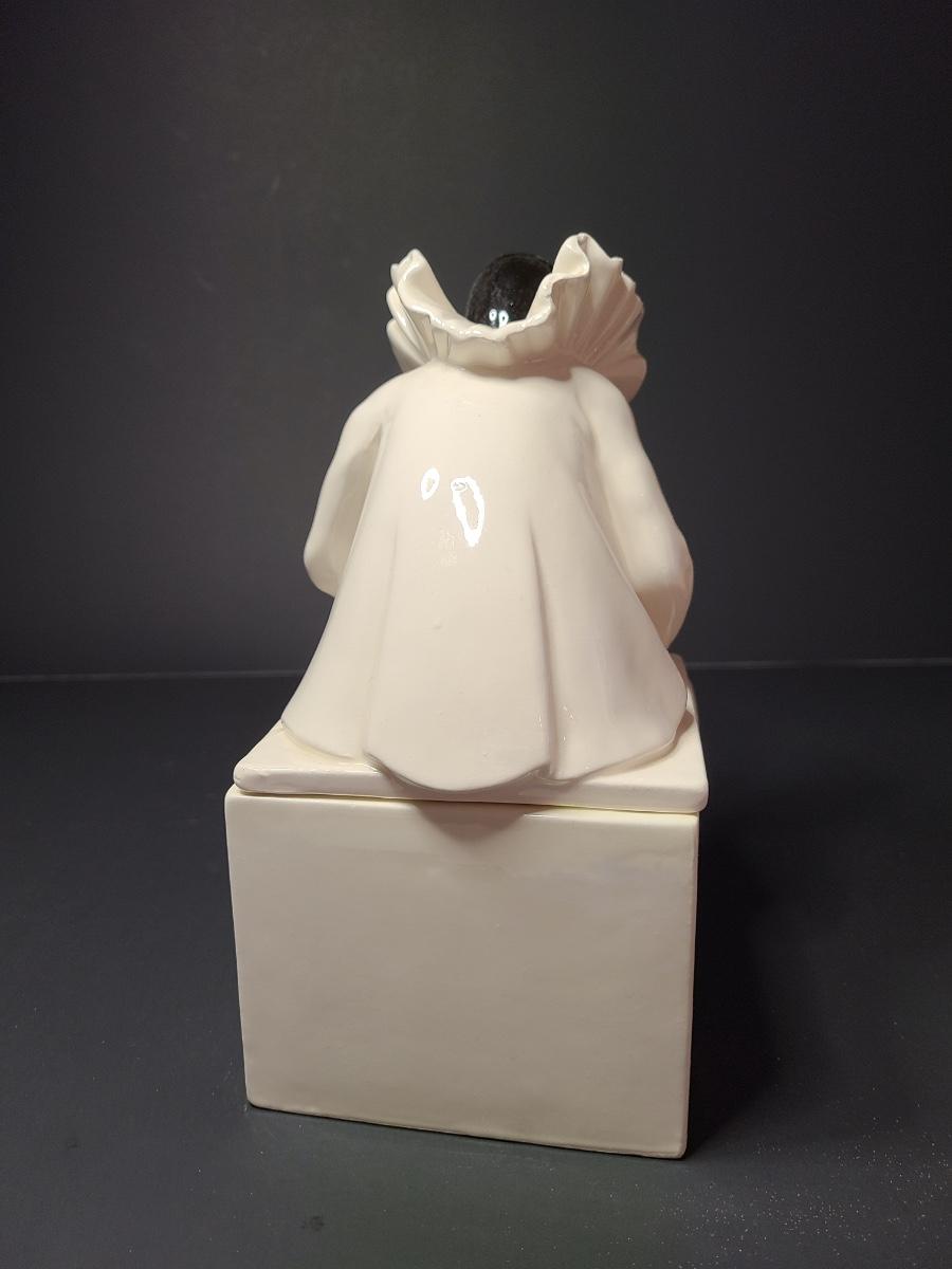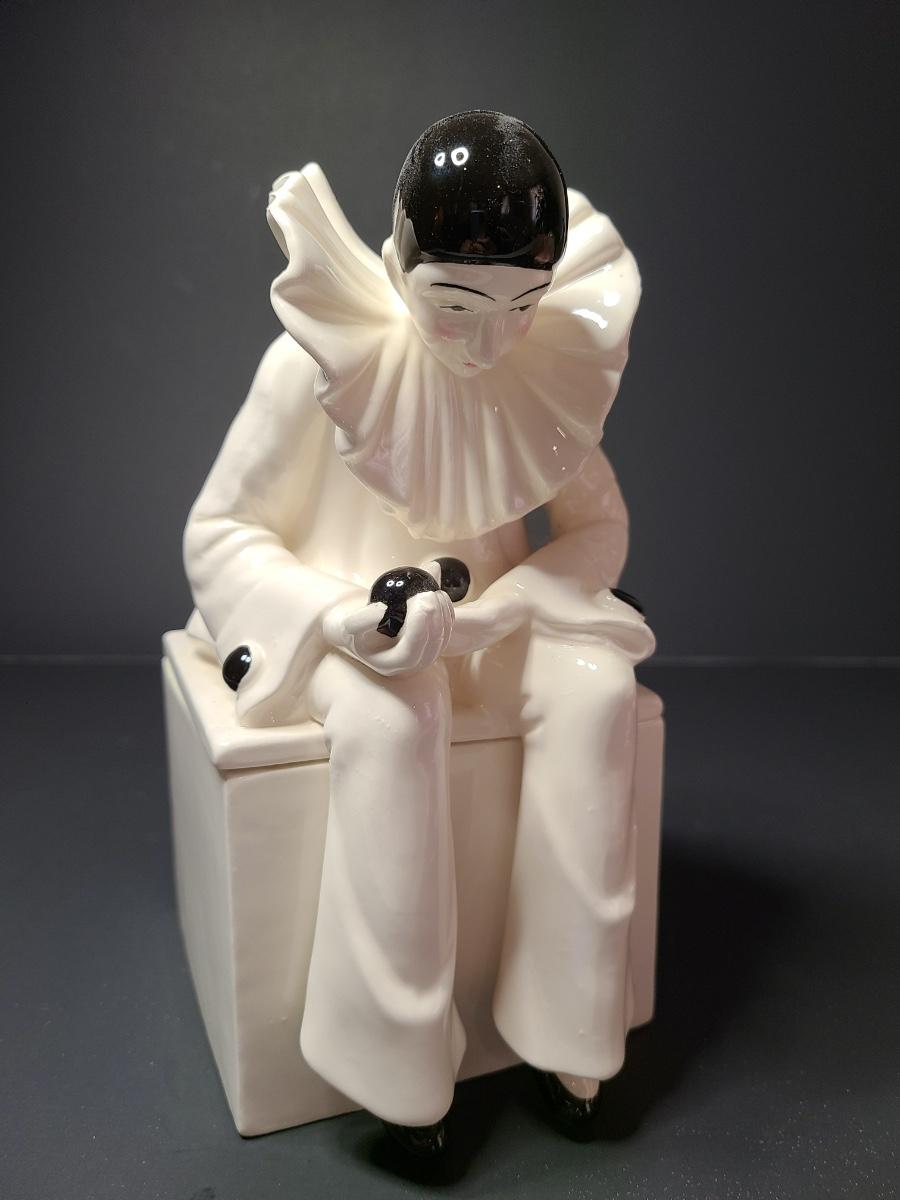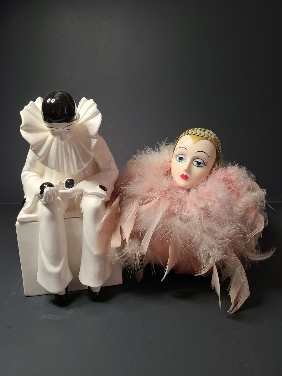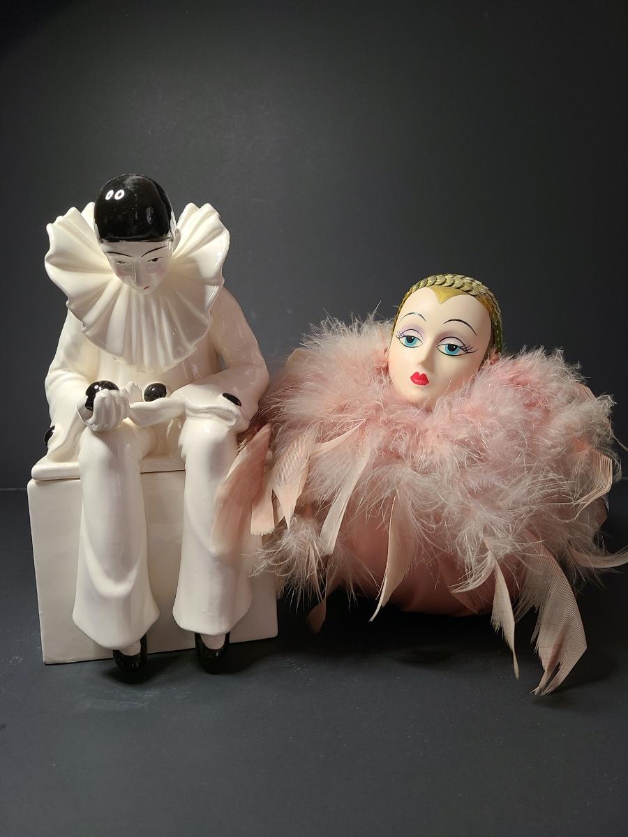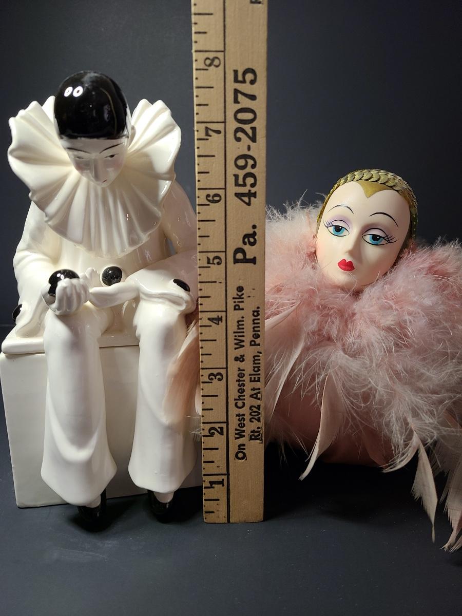 Vintage Mann Music Box pin cushion with art deco design, and ceramic Harlequin trinket box. Please see all pictures as they are the best representation of the items. The pictures show condition, measurements if taken, and what is included in the lot. Due to the large amount that we photograph and the time frame, we are not always able to take measurements. All items unless noted, are pre-owned and have been used. If you purchased furniture, you must bring help. We do not allow one person to carry large furniture out on their own. Bring help, tools and a truck for the safety of our client’s homes, and your personal safety. Company policy. Thank you.