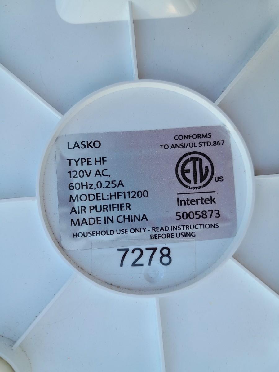 LASKO AIR PURIFIER TYPE HF MODEL HF11200 AND BONAIRE HEATER MODEL BFH3342M
