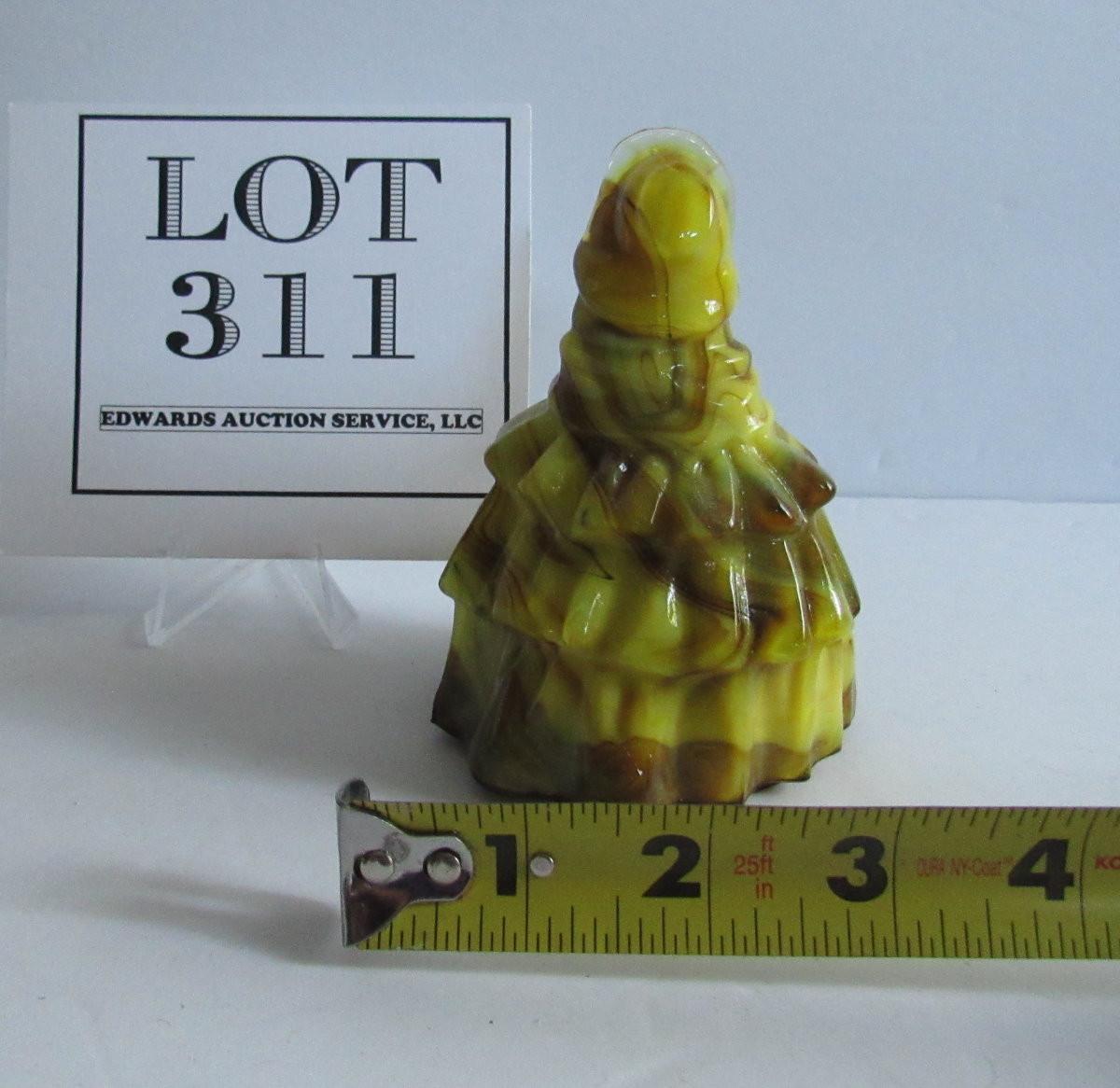 Lot 311: Older Boyd Glass Yellow and Brown Slag Lady Bell