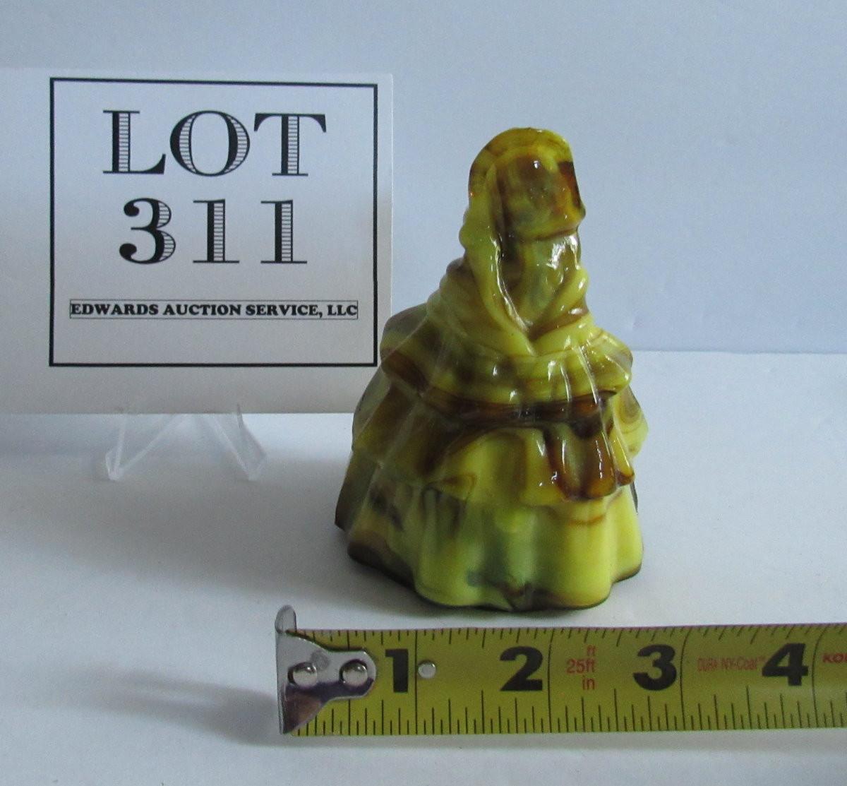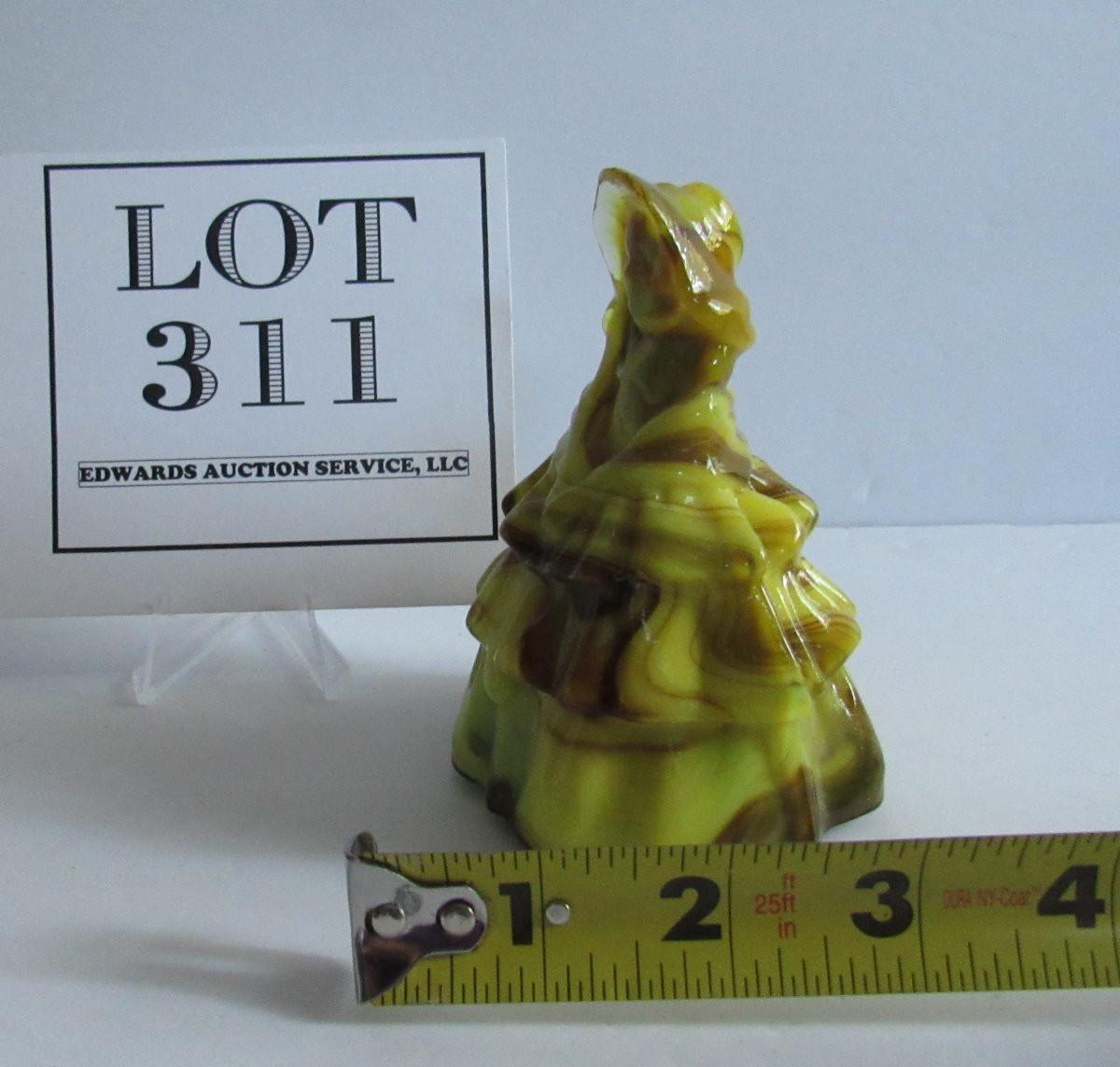 Lot 311:  Older Boyd Glass Yellow and Brown Slag Lady Bell