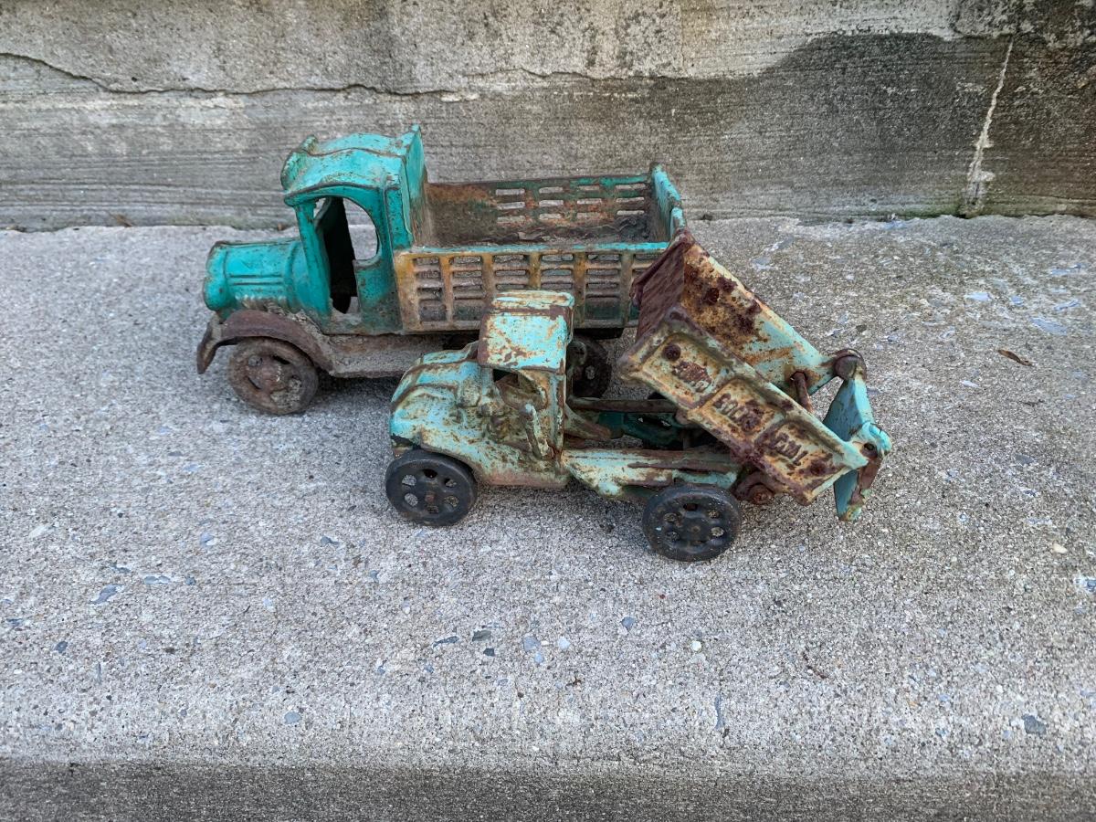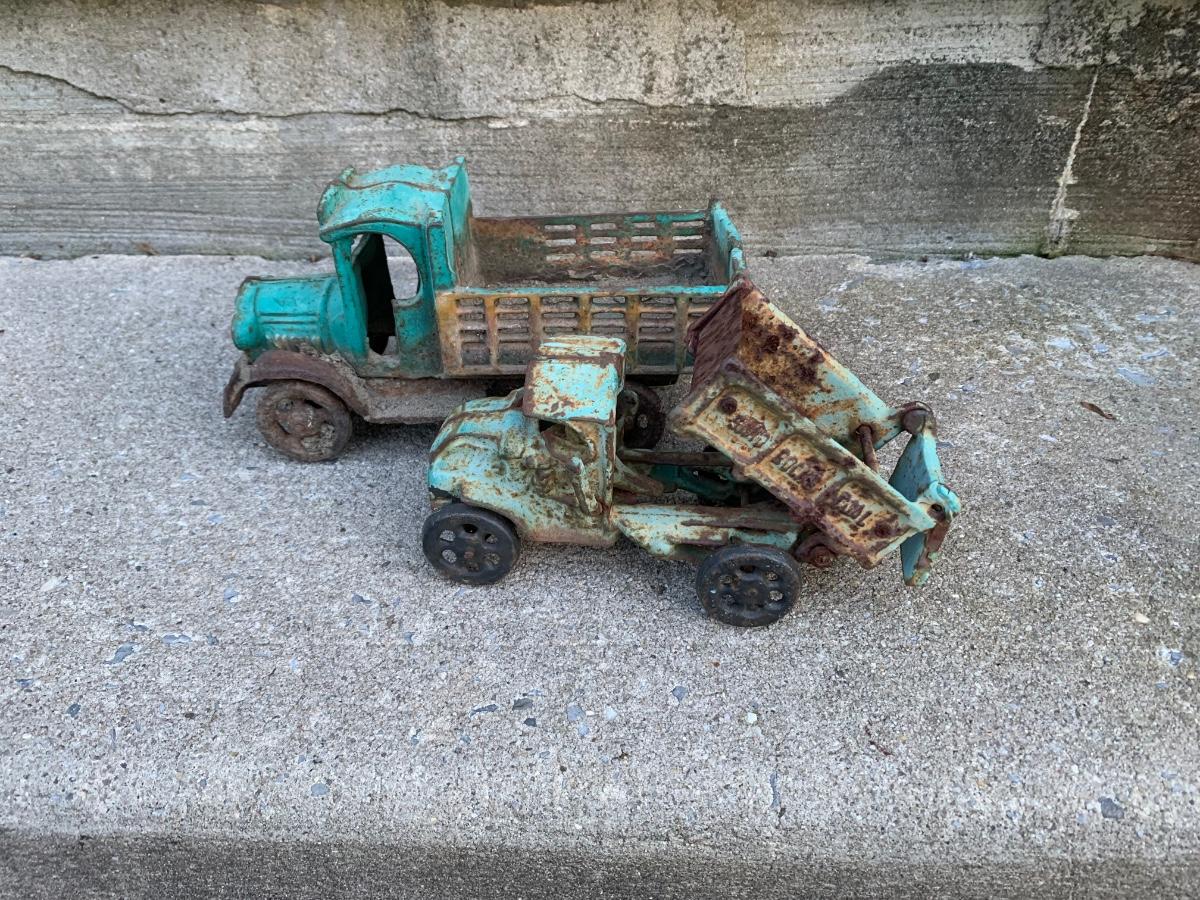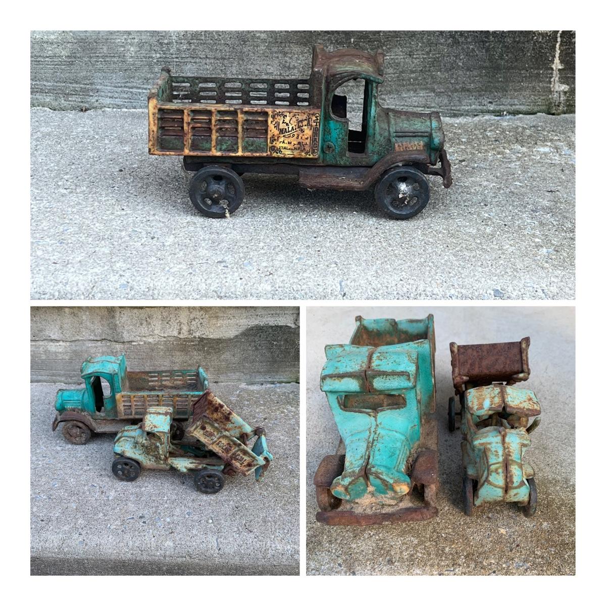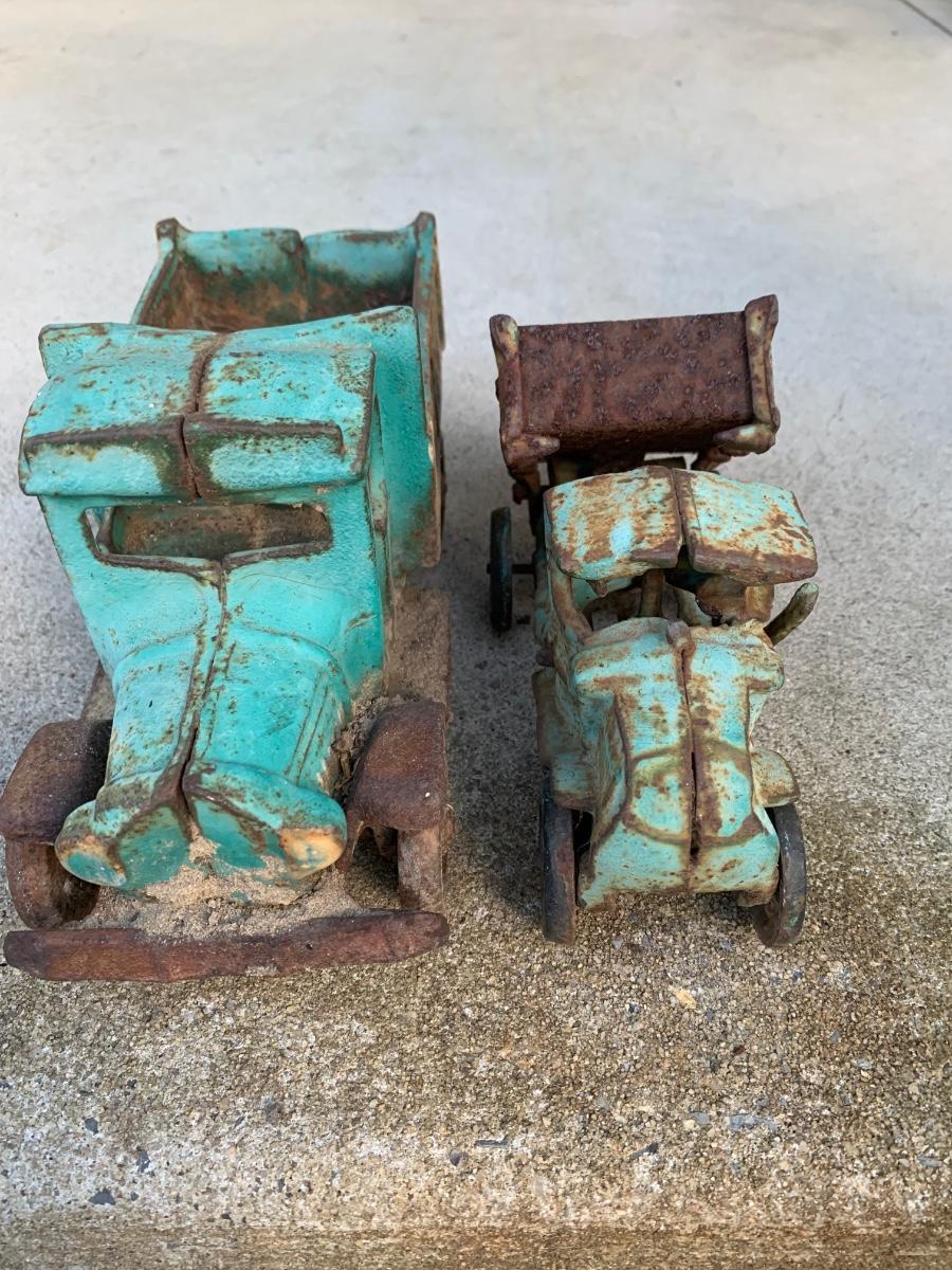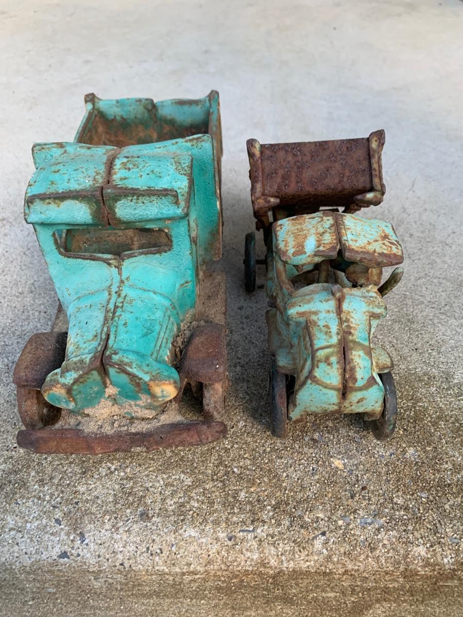 This is an great find: set of 3 toy trucks complete with original wheels.
