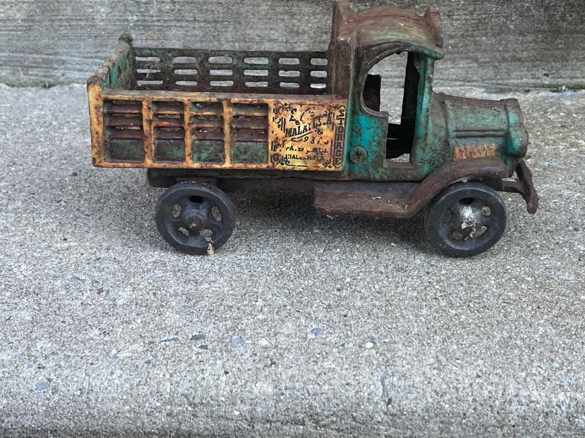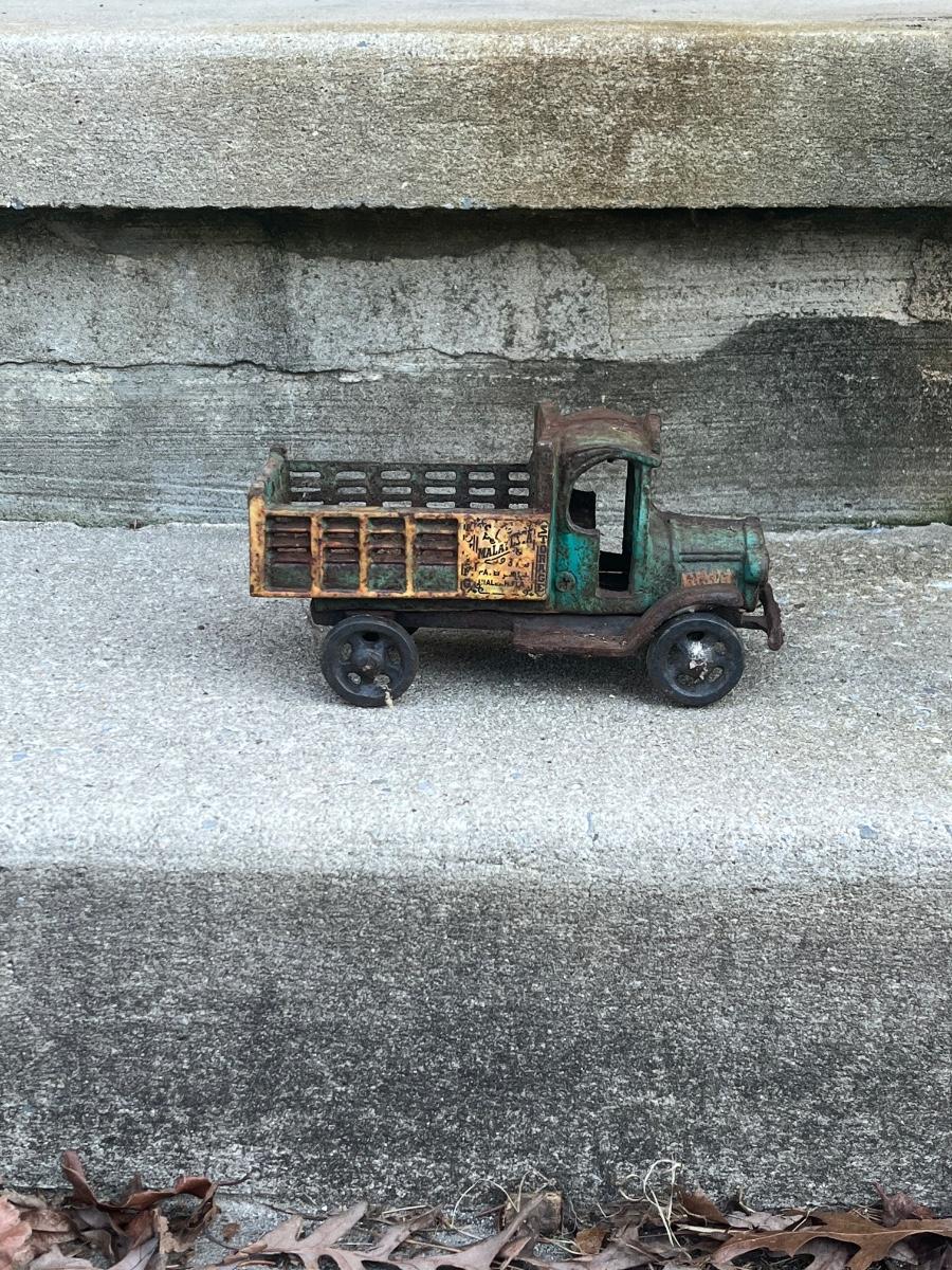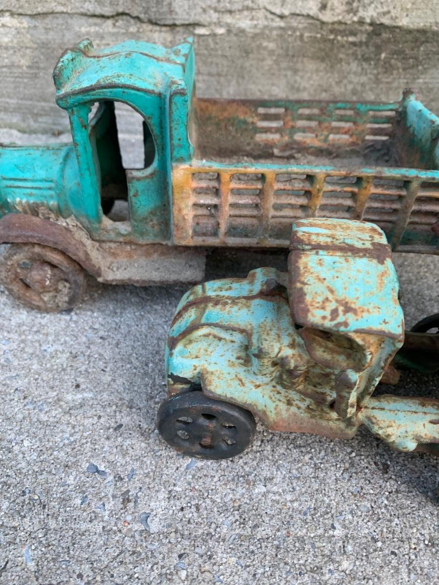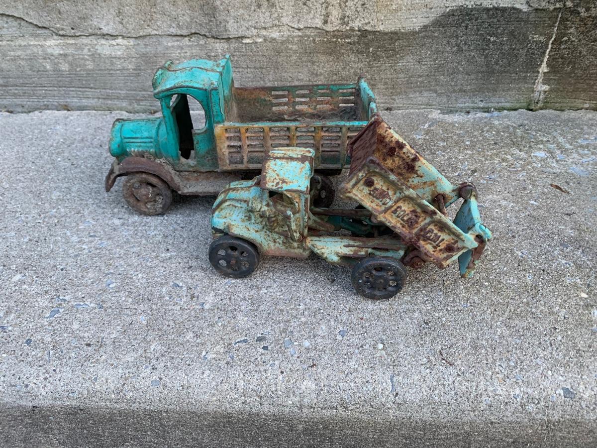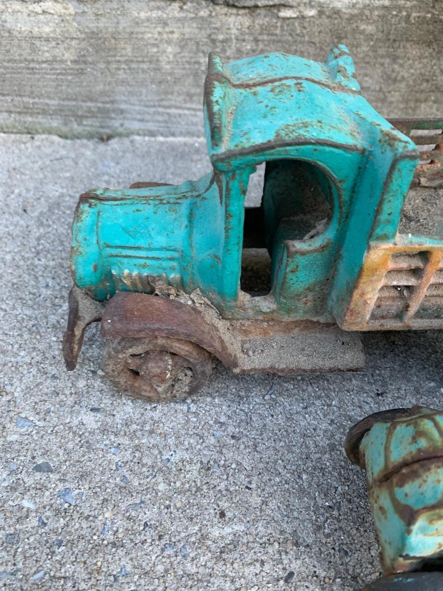 This is an great find: set of 3 toy trucks complete with original wheels.