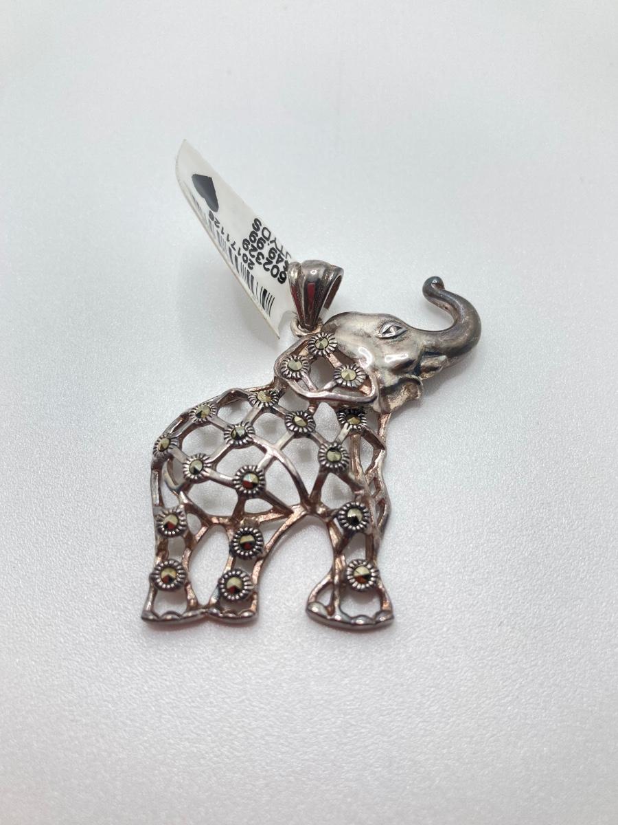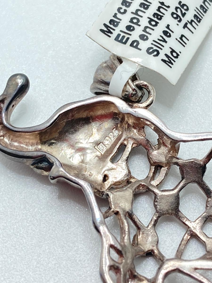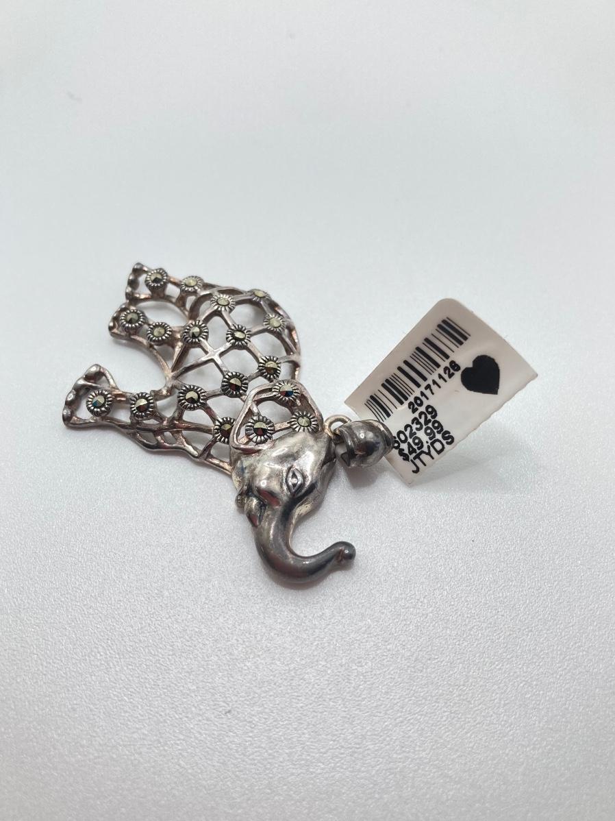 LOT 312: Sterling Silver and Marcasite Jewelry - Elephant Pendant Tw 6.71g and Manleigh Monogrammed Tie Clip