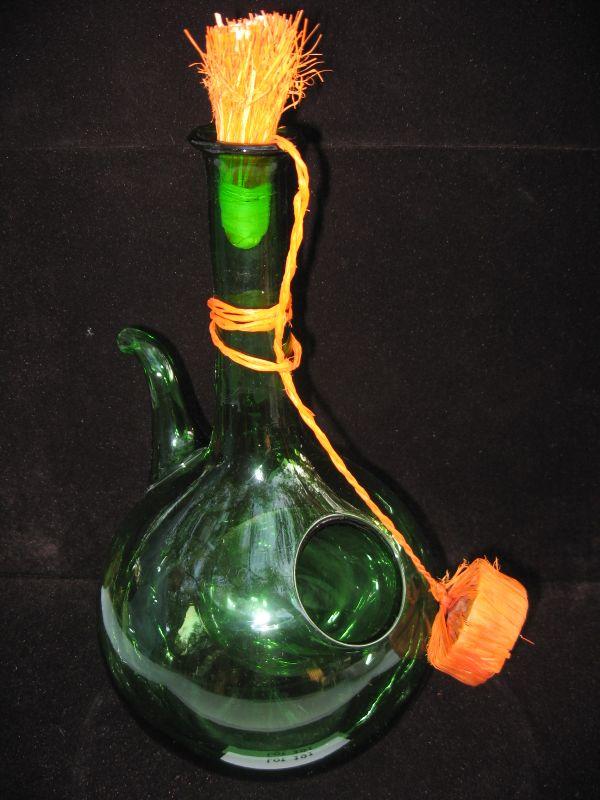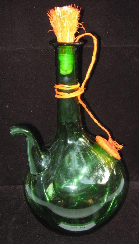 Vintage Hand Blown ITALIAN Green Glass Bottle Wine Jug DECANTER with Ice Chamber.