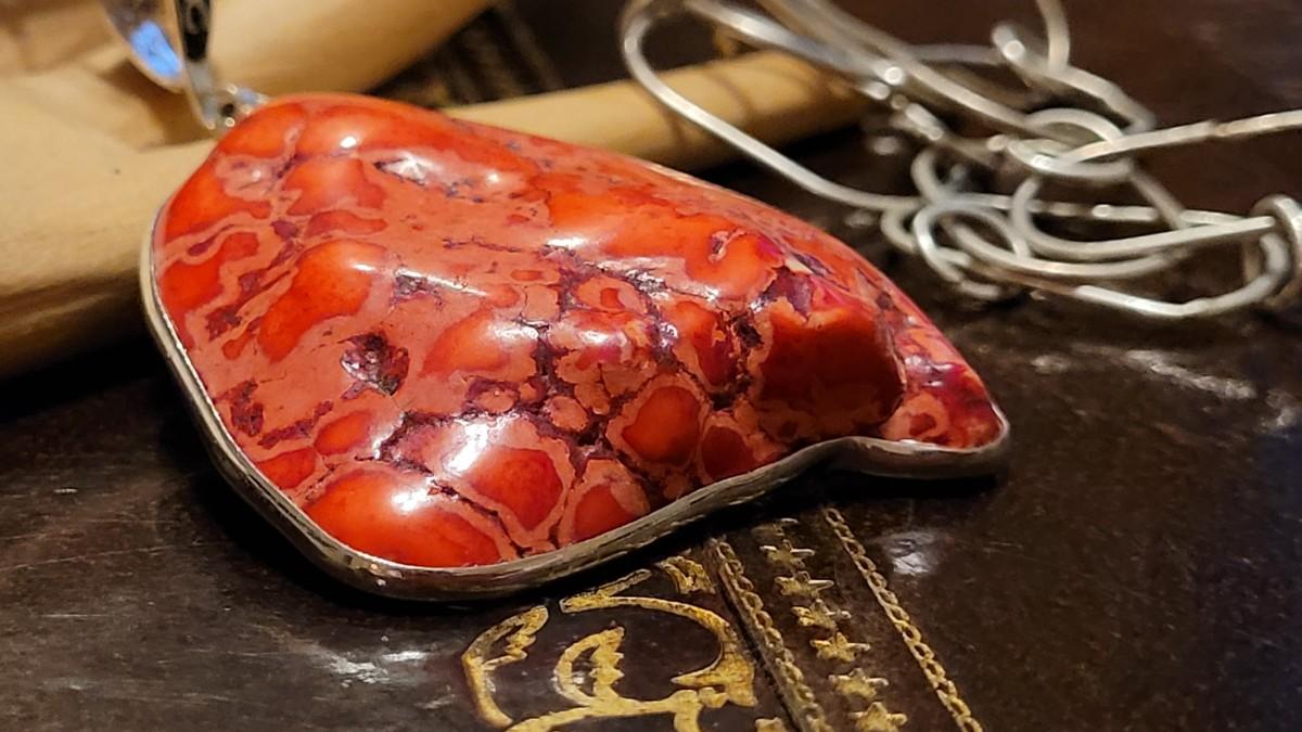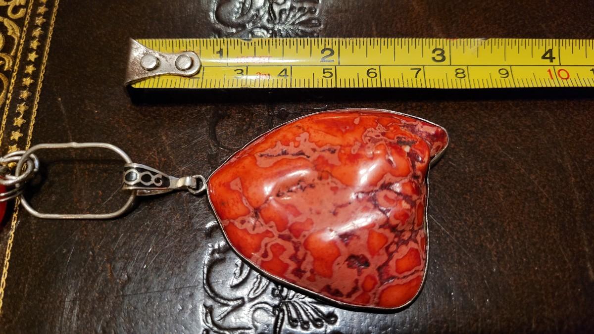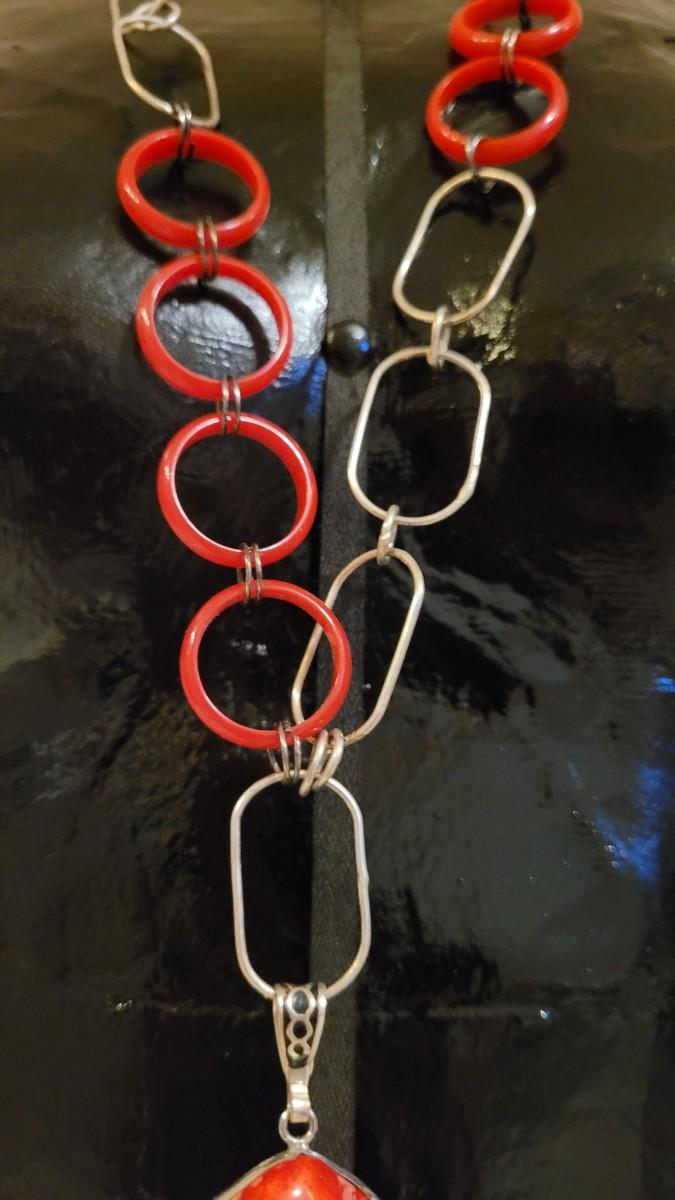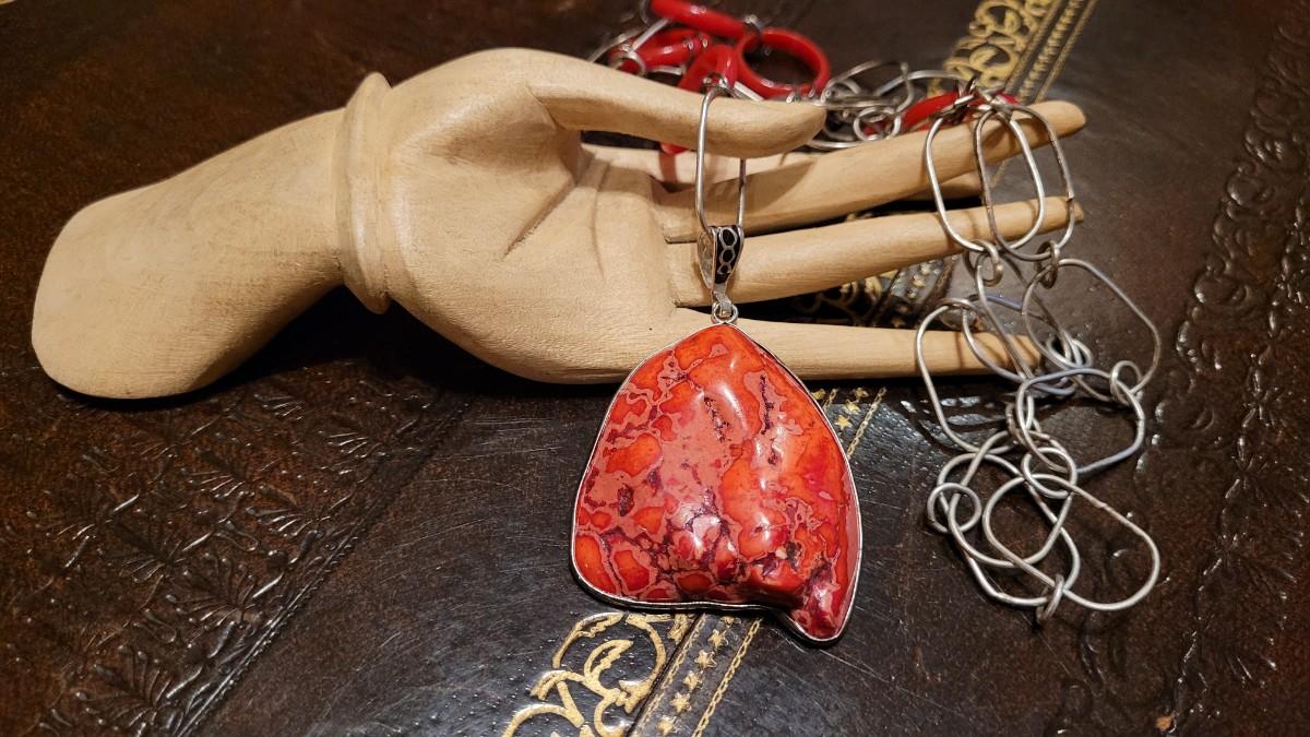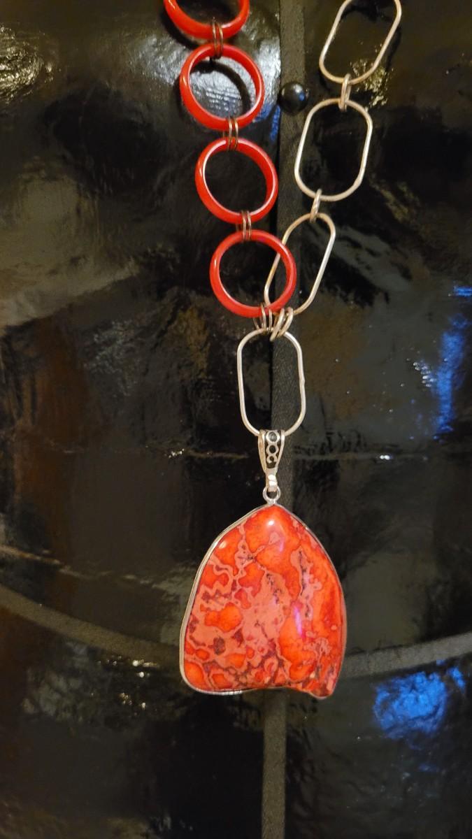 Lot 312: Large Coral? Pendant w/ Red & Silver Necklace