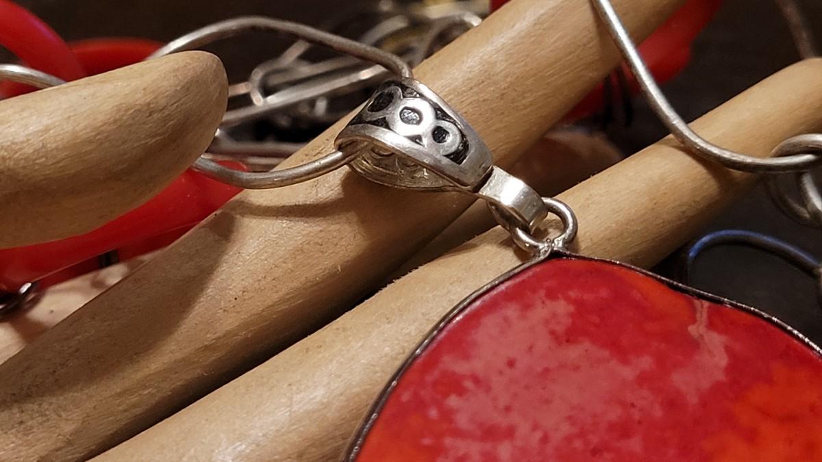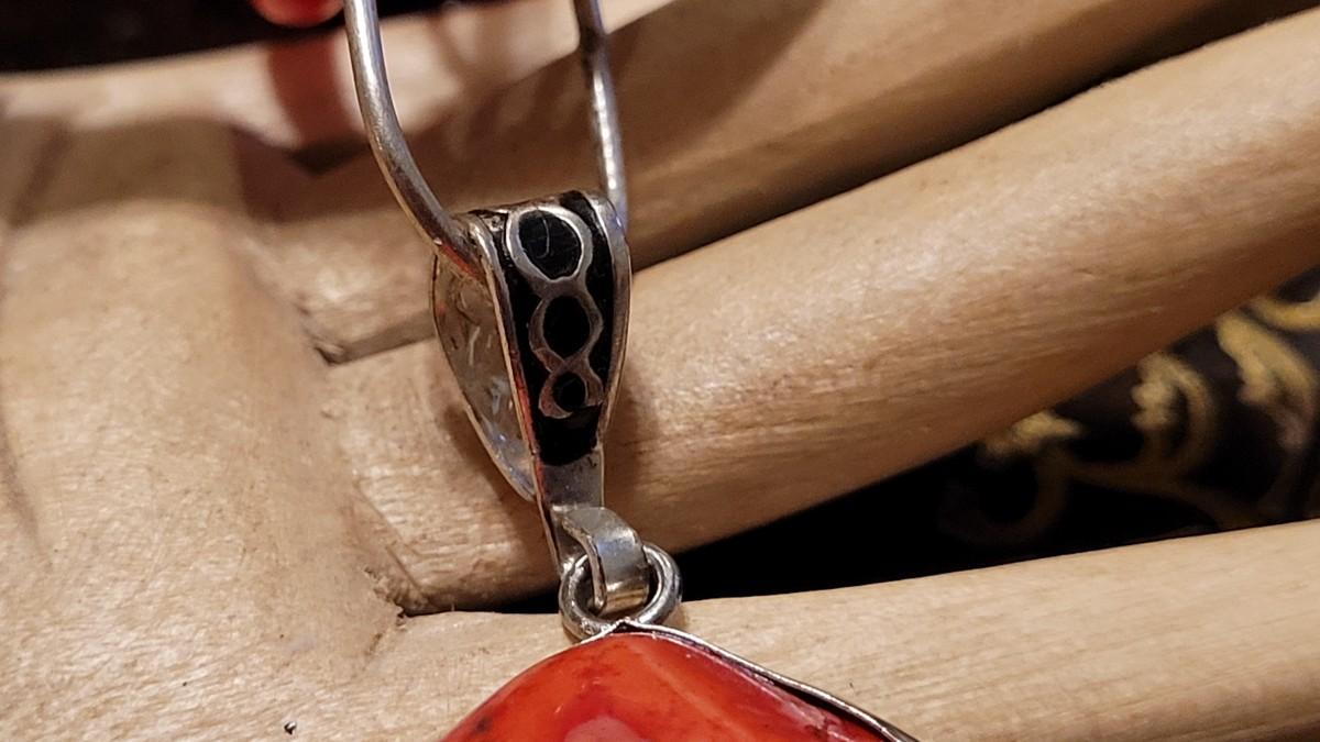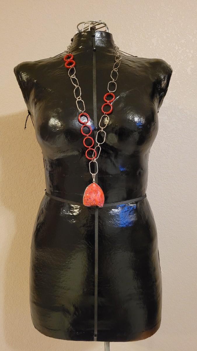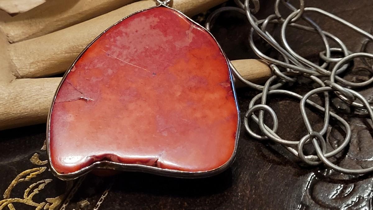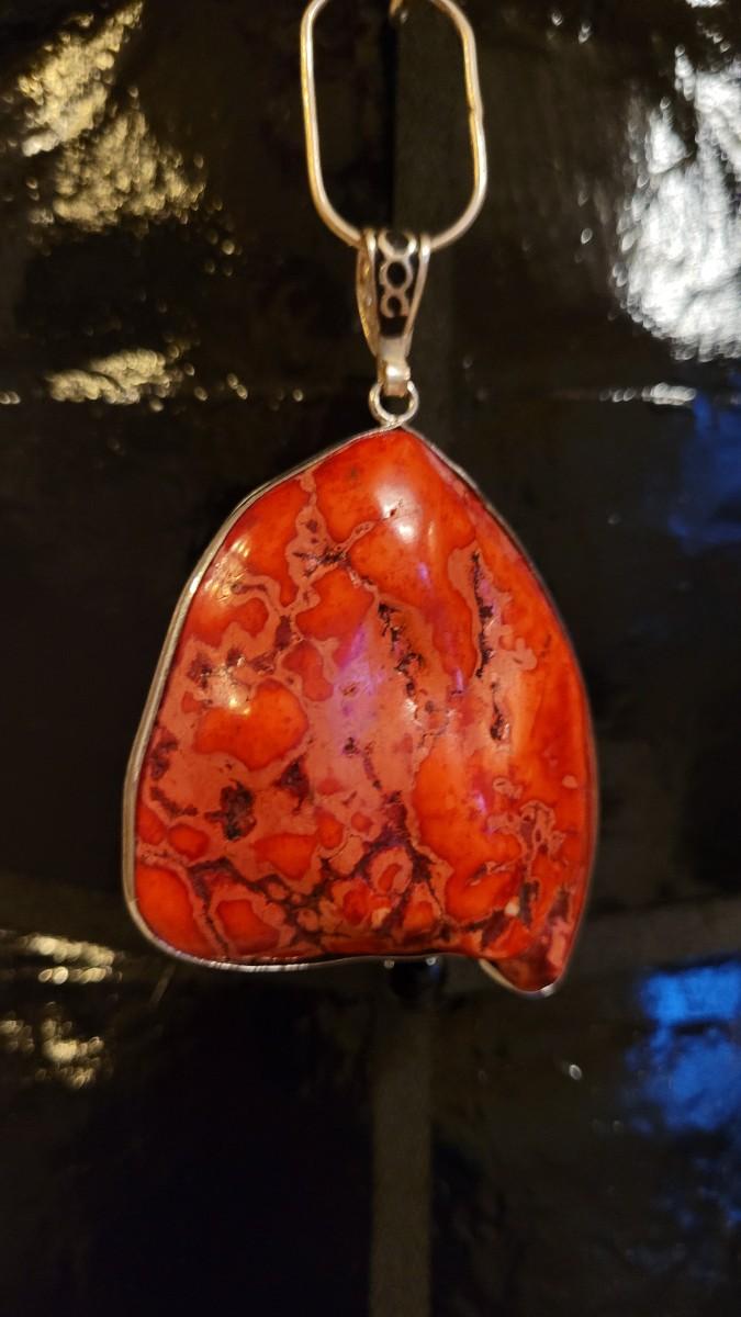 Lot 312: Large Coral? Pendant w/ Red & Silver Necklace