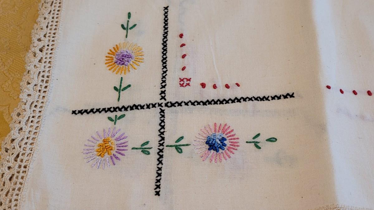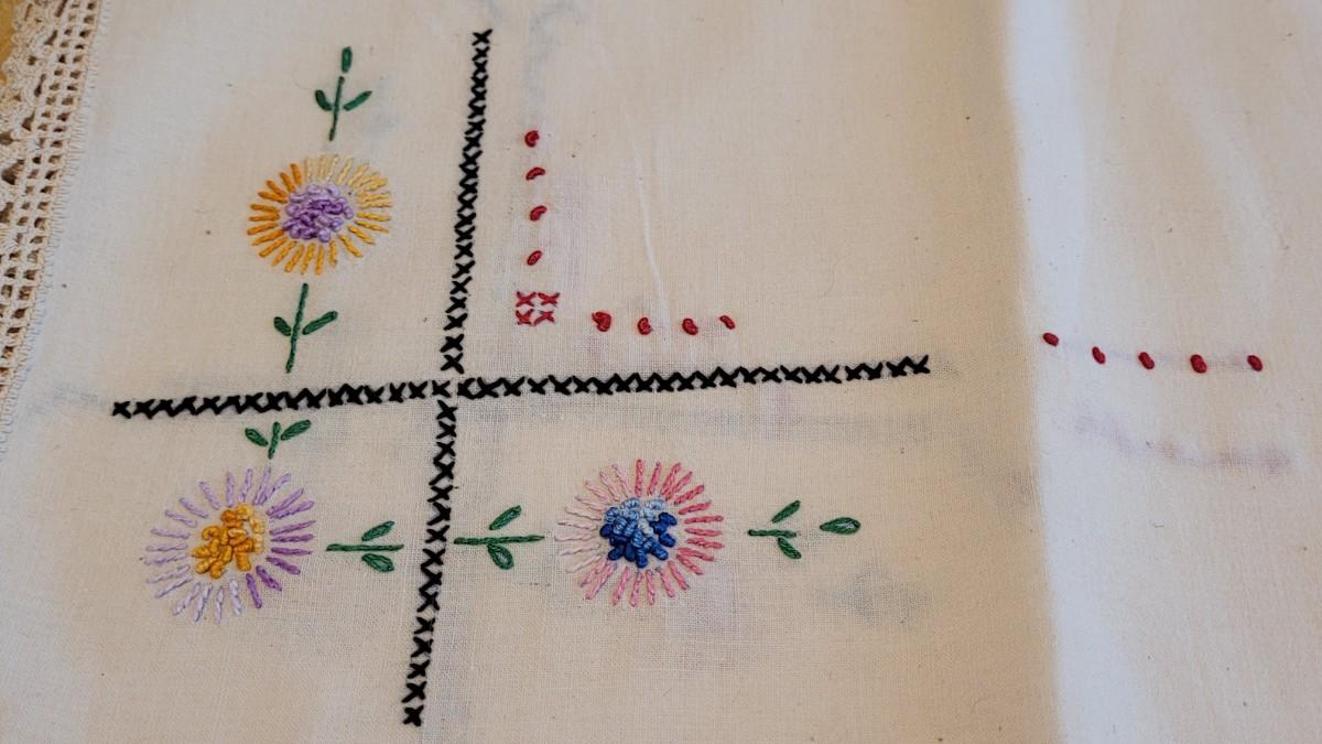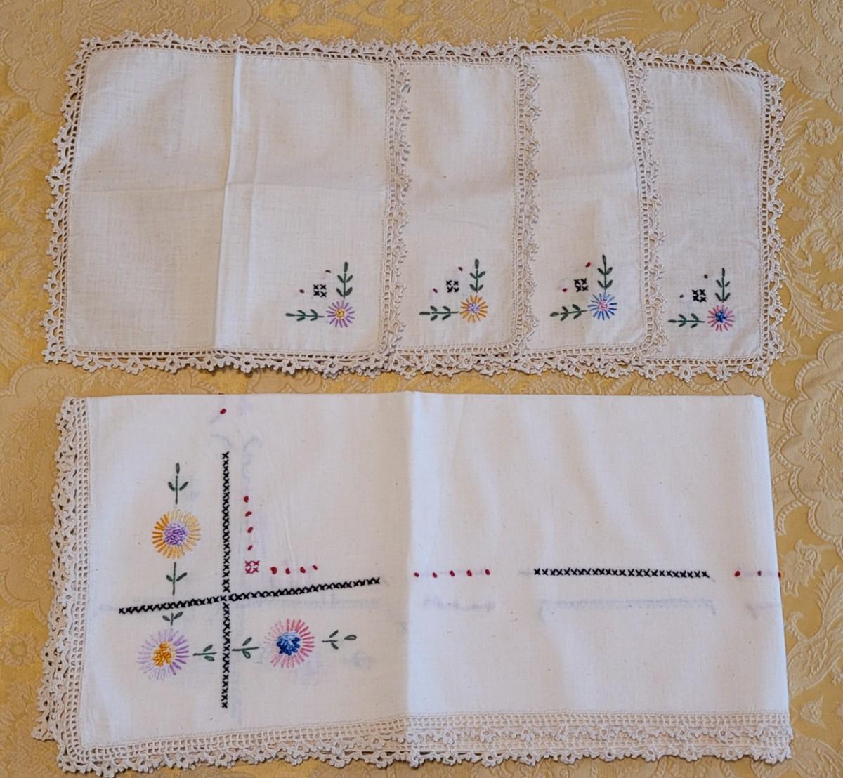 Lot 312: Vintage Needlepoint Picnic Tablecloth and Napkins