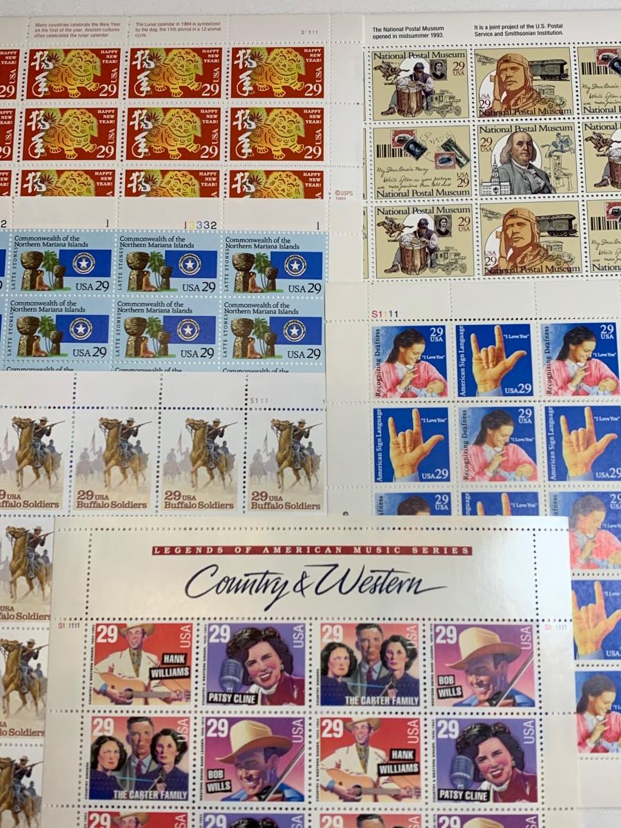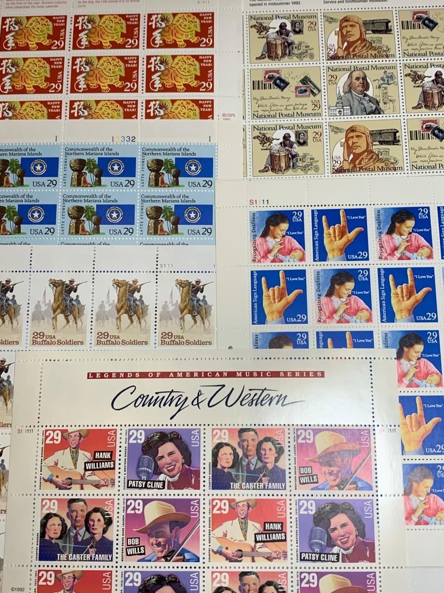Stamp collection with a approximate Retail Value of $168. There are approximately 580 stamps and a value of .29 cents. The retail pertains to the year these stamps were purchased, but because many of these sheets and/or loose stamps are no longer for sale and hard to find, they sell well individually online and for more than retail. Please see all pictures as they are the best representation of the items. The pictures show condition, measurements if taken, and what is included in the lot. Due to the large amount that we photograph and the time frame, we are not always able to take measurements. All items unless noted, are pre-owned and have been used. If you purchased furniture, you must bring help. We do not allow one person to carry large furniture out on their own. Bring help, tools and a truck for the safety of our client’s homes, and your personal safety. Company policy. Thank you.