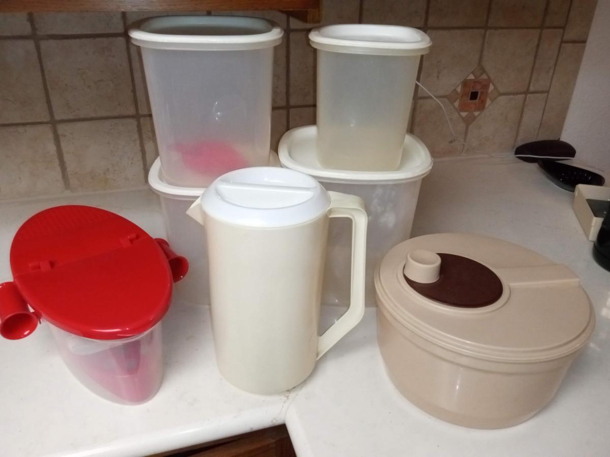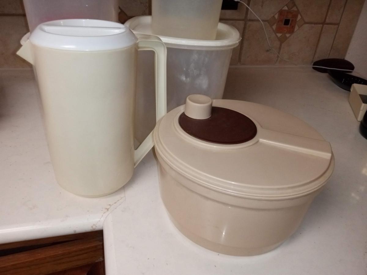 FOOD STORAGE CONTAINERS, PITCHER, LETTUCE SPINNER AND PASTA MICROWAVE MAKER