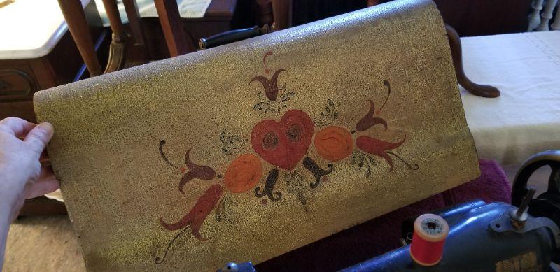 Ornate antique Franklin Rotary Sewing Machine in Carrying case - WORKS - I held my breath when we plugged it in but it came to life immediately - hahaah. Serial Number 58235. 21" across and 9.5 inches deep. Has a pedal that you operate with your knee - works.