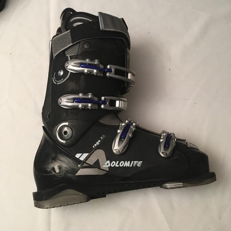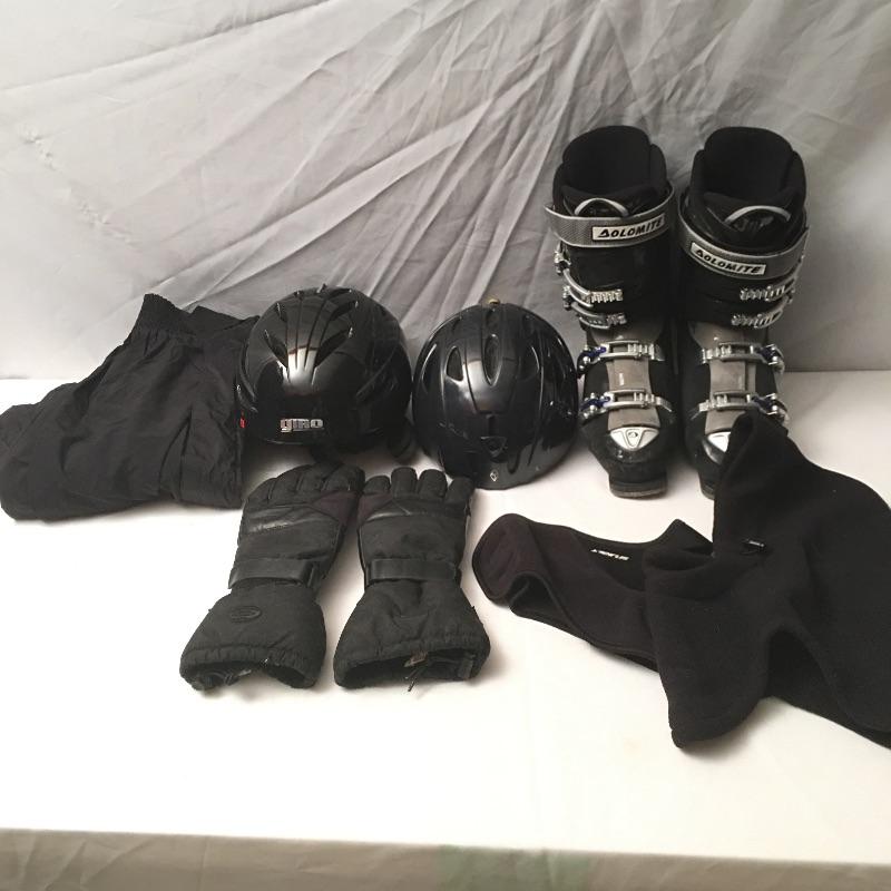 Dolomite ski boots and more. Lot includes Dolomite Rage x8 ski boots in size 29.5, Giro and K2 helmets(large), Lowe Alpine ski pants size large, baclava and gloves by Seirus. You will be all set for skiing with this handy lot.