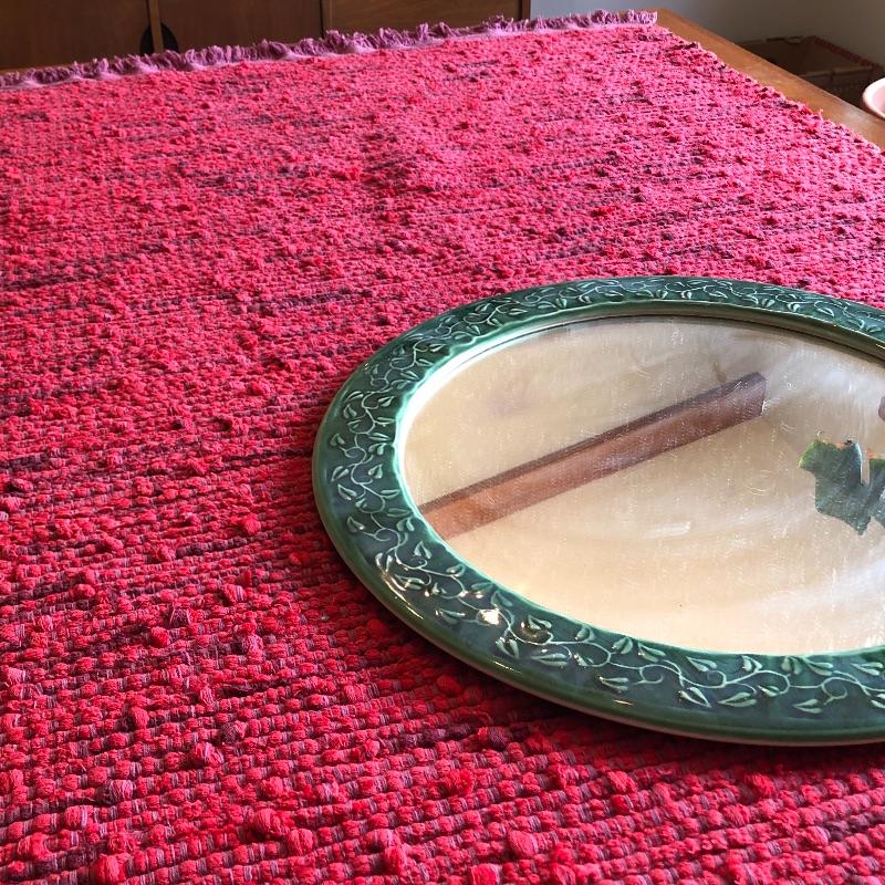 Lot 312 - Woven Rug & Peterson Pottery Mirror
