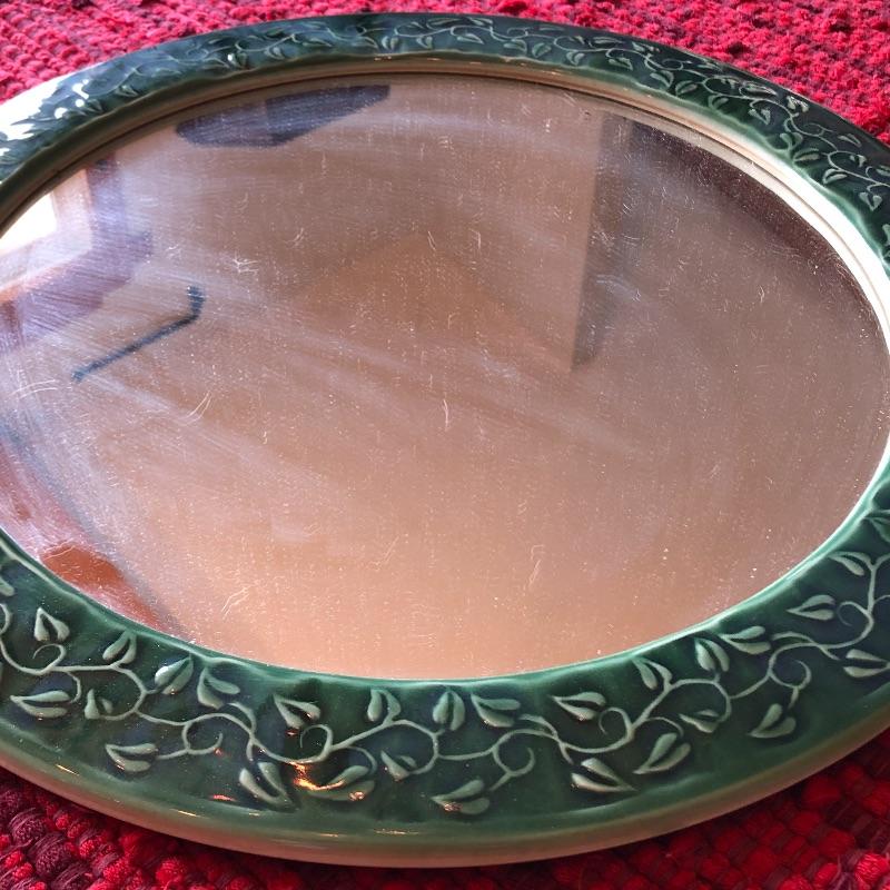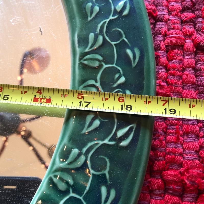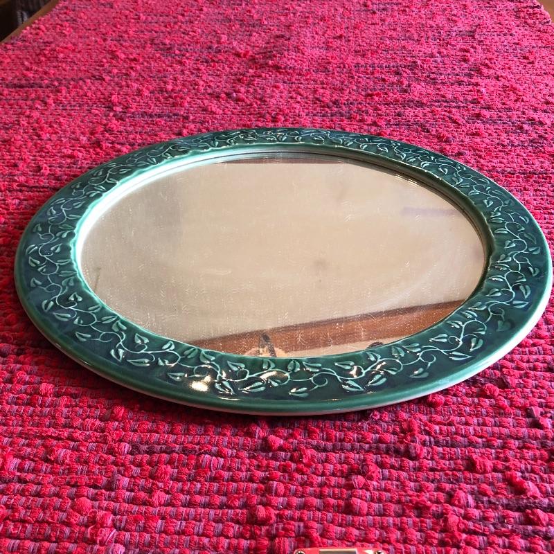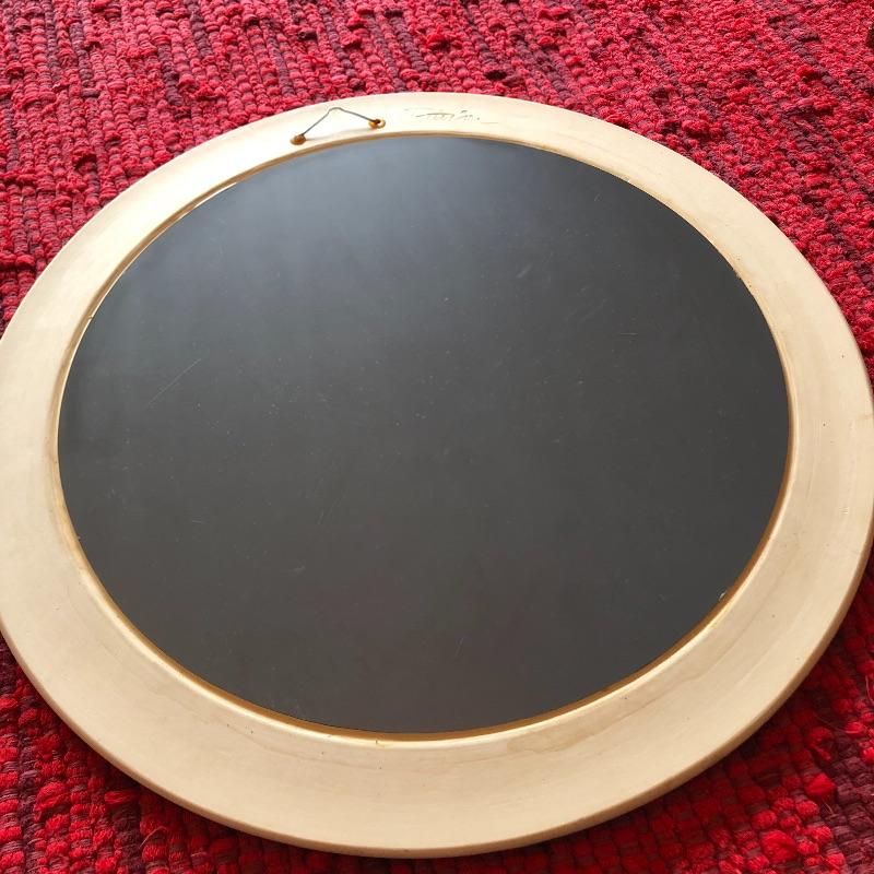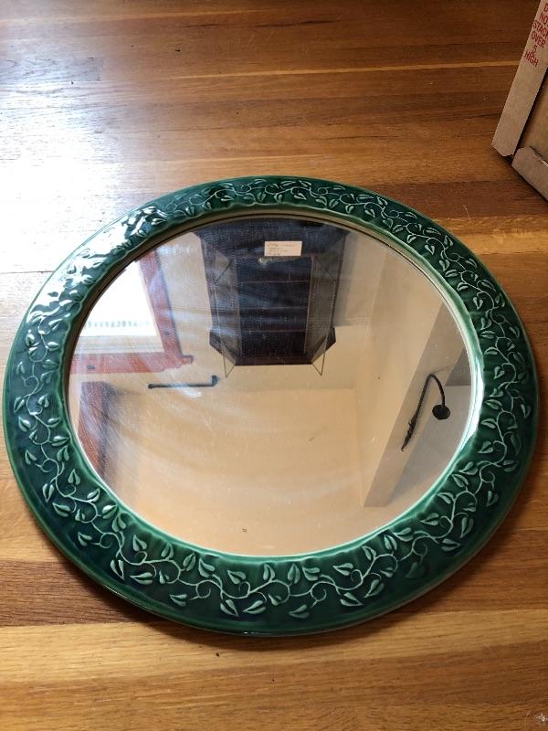 This lot includes an oval mirror and rug. The rug measures 72” x 35”. The mirror is signed and is 18.5” in diameter. Shipping Available.