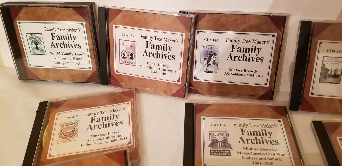 If you are into Genealogy, you are going to want these - 16 Family Tree Maker CDs chock full of info - Note: in the World Family Tree Maker set of 5 CDs, Vol II is missing. This would also be a good ebay lot - some of these sell for more that you might think.
