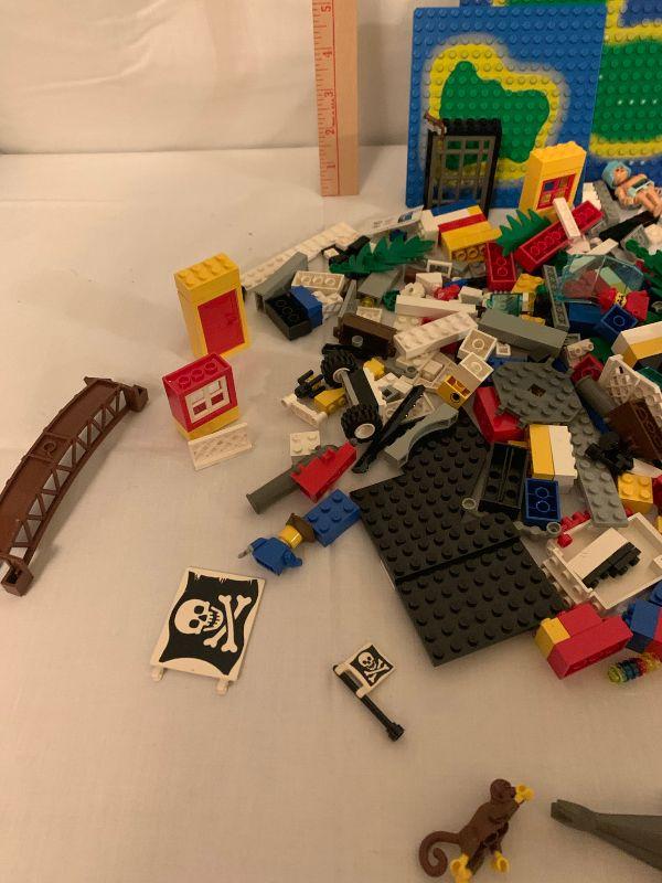 Lego Lot: Lg and small Lego island boards, bridge, shark, people x7, monkey and more