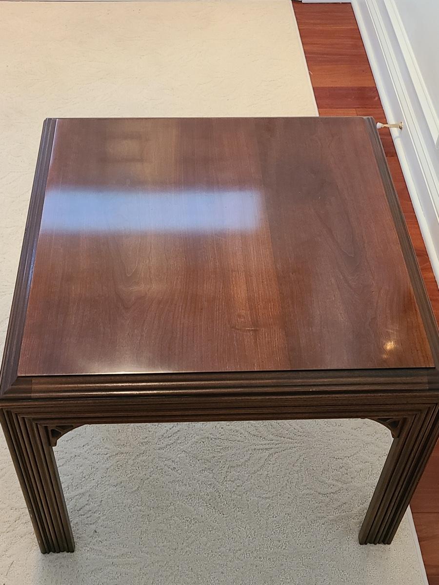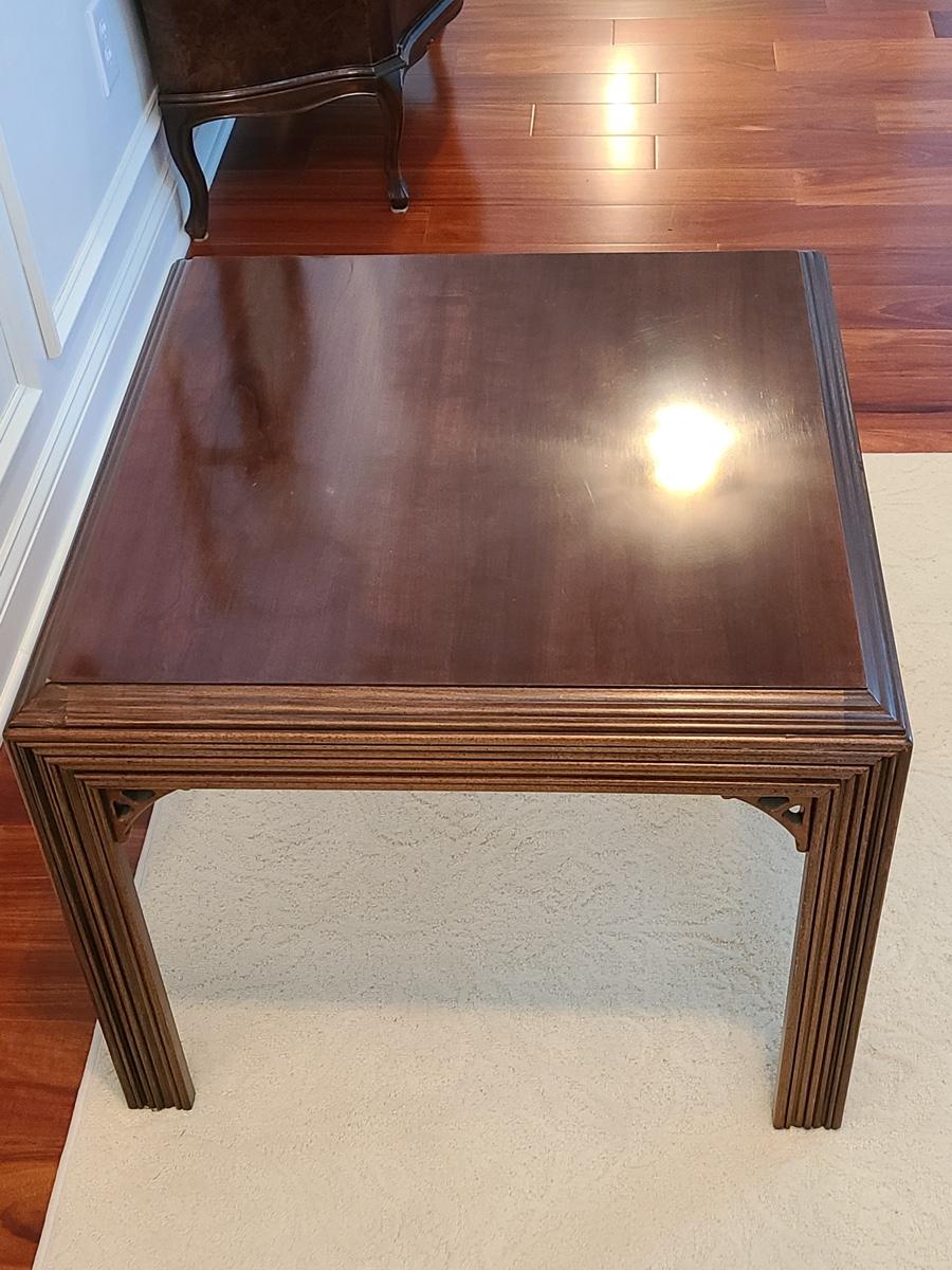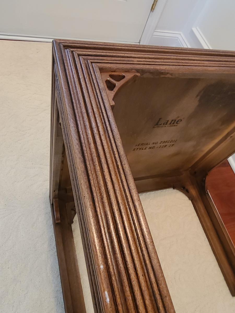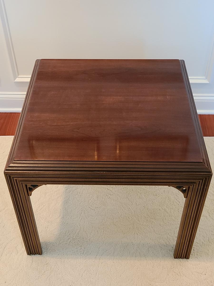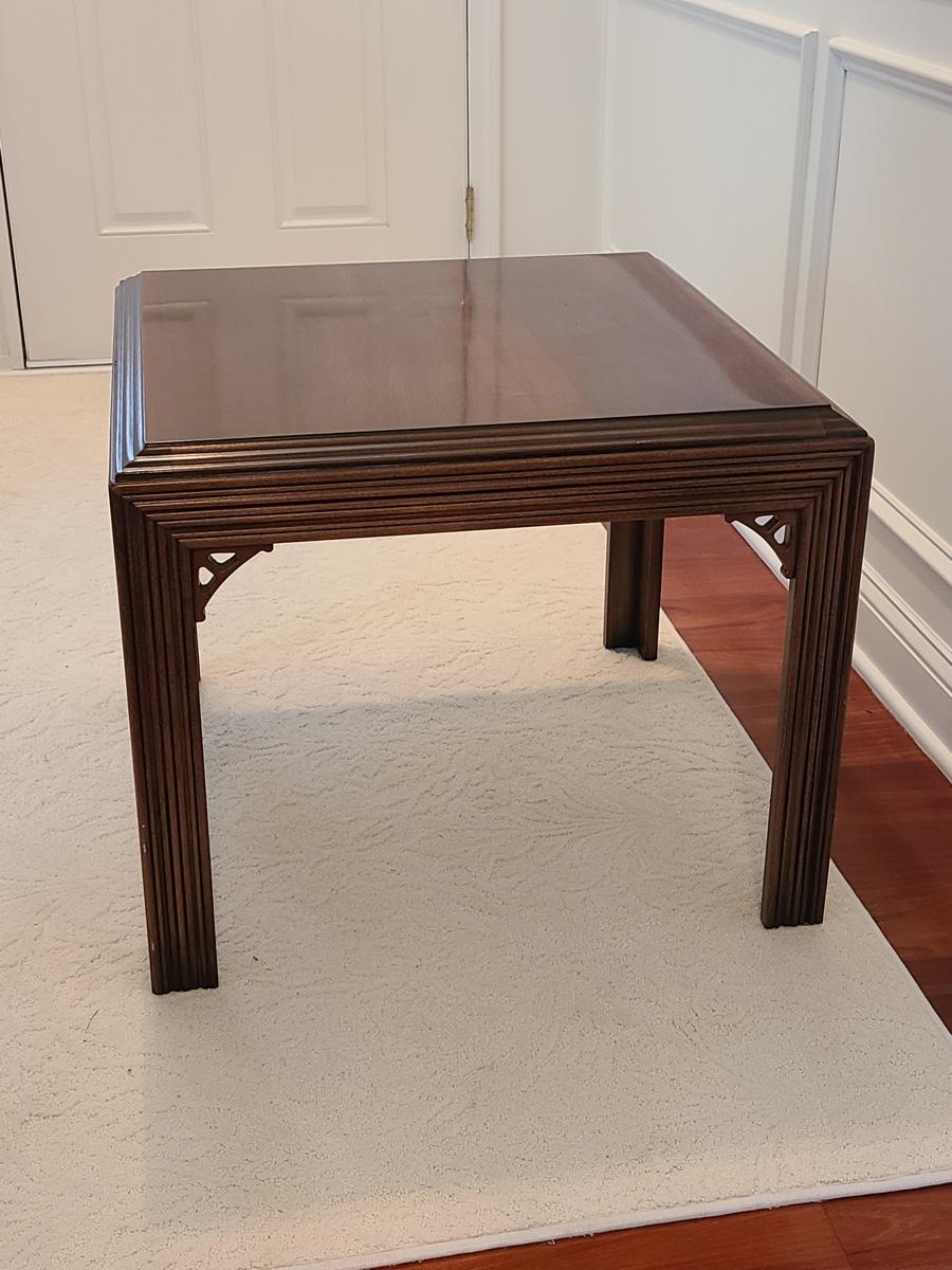 26x26x21. This solid piece is made by the Lane furniture company. Excellent accent table in any room. Please see all pictures as they are the best representation of the items. The pictures show condition, measurements if taken, and what is included in the lot. Due to the large amount that we photograph and the time frame, we are not always able to take measurements. All items unless noted, are pre-owned and have been used. If you purchased furniture, you must bring help. We do not allow one person to carry large furniture out on their own. Bring help, tools and a truck for the safety of our client’s homes, and your personal safety. Company policy. Thank you.