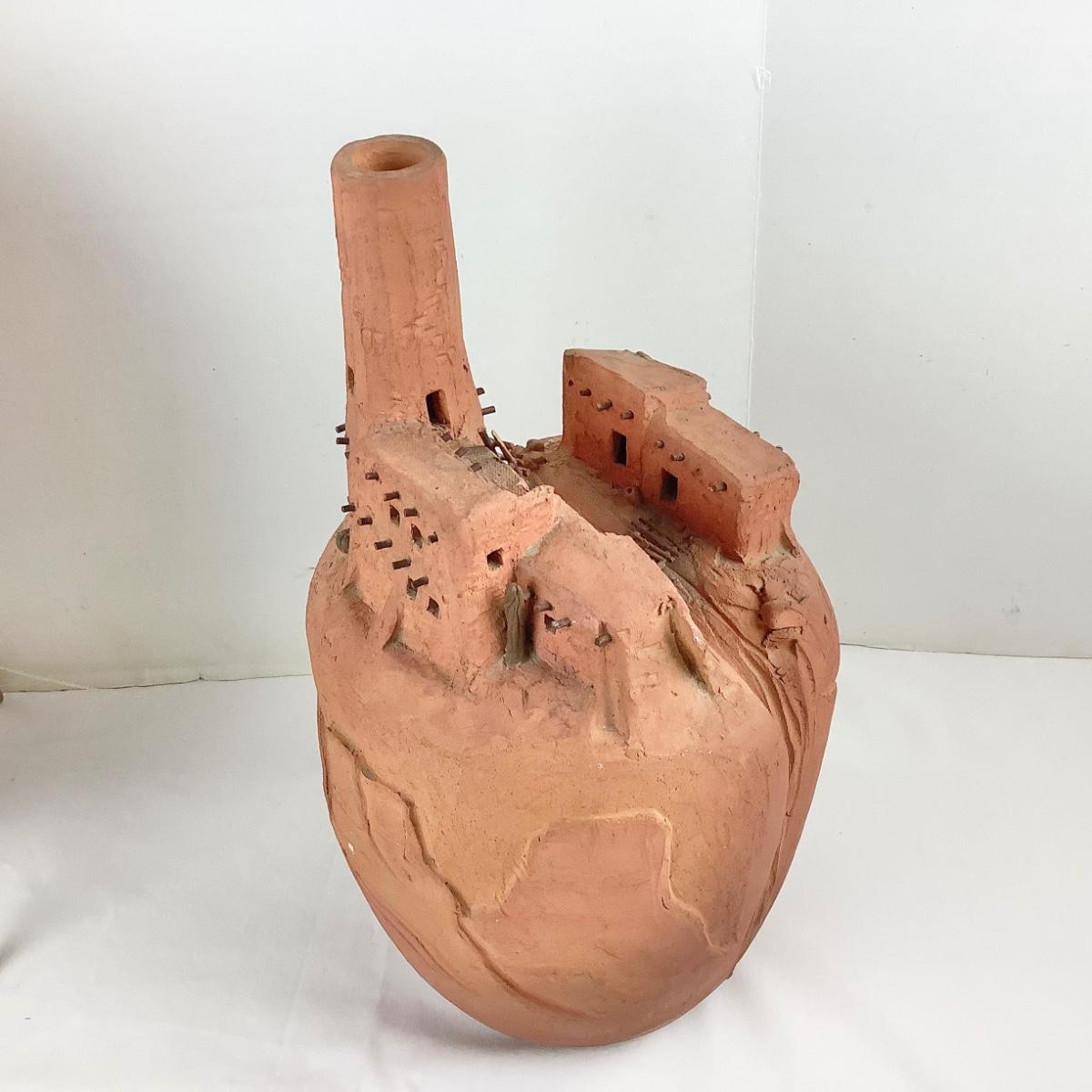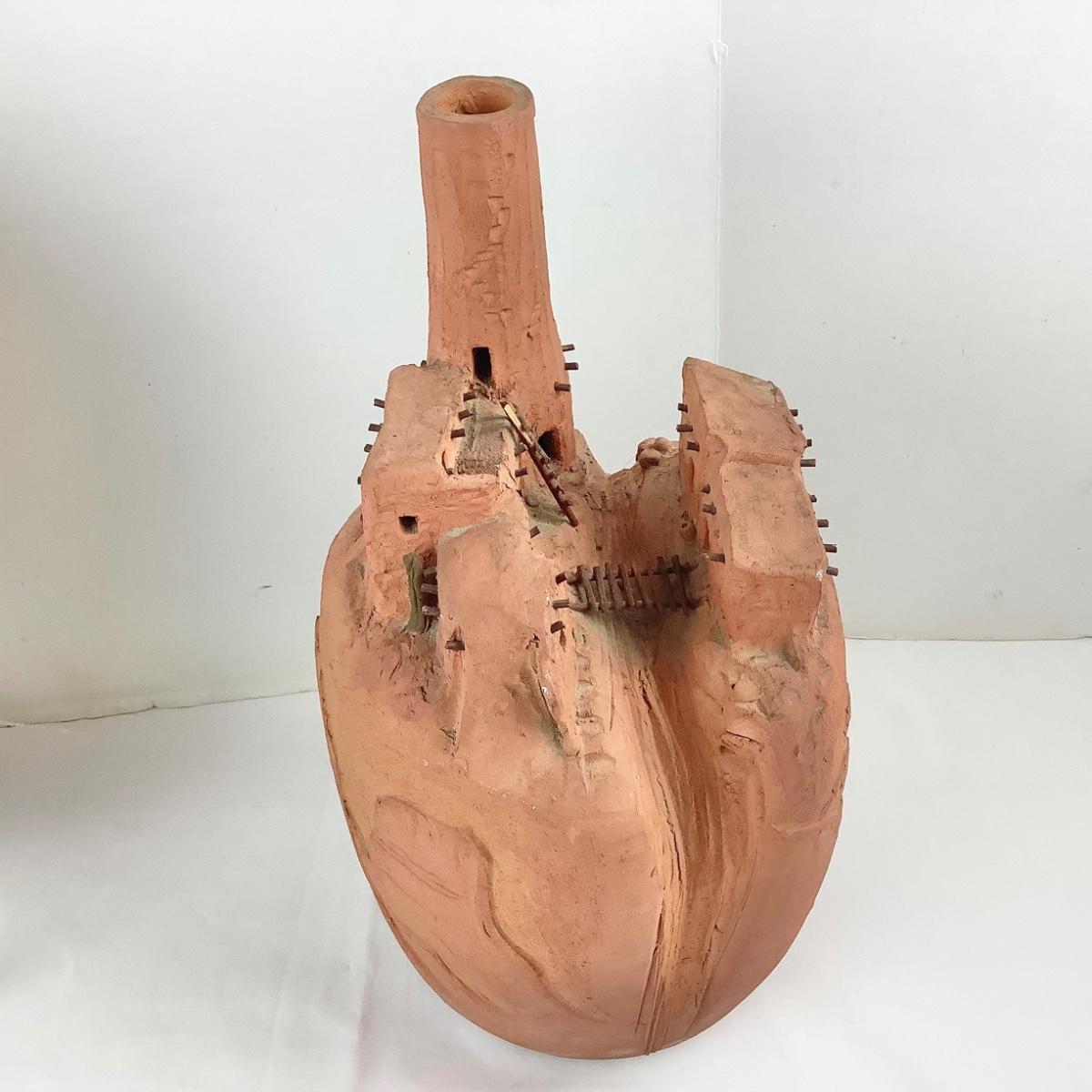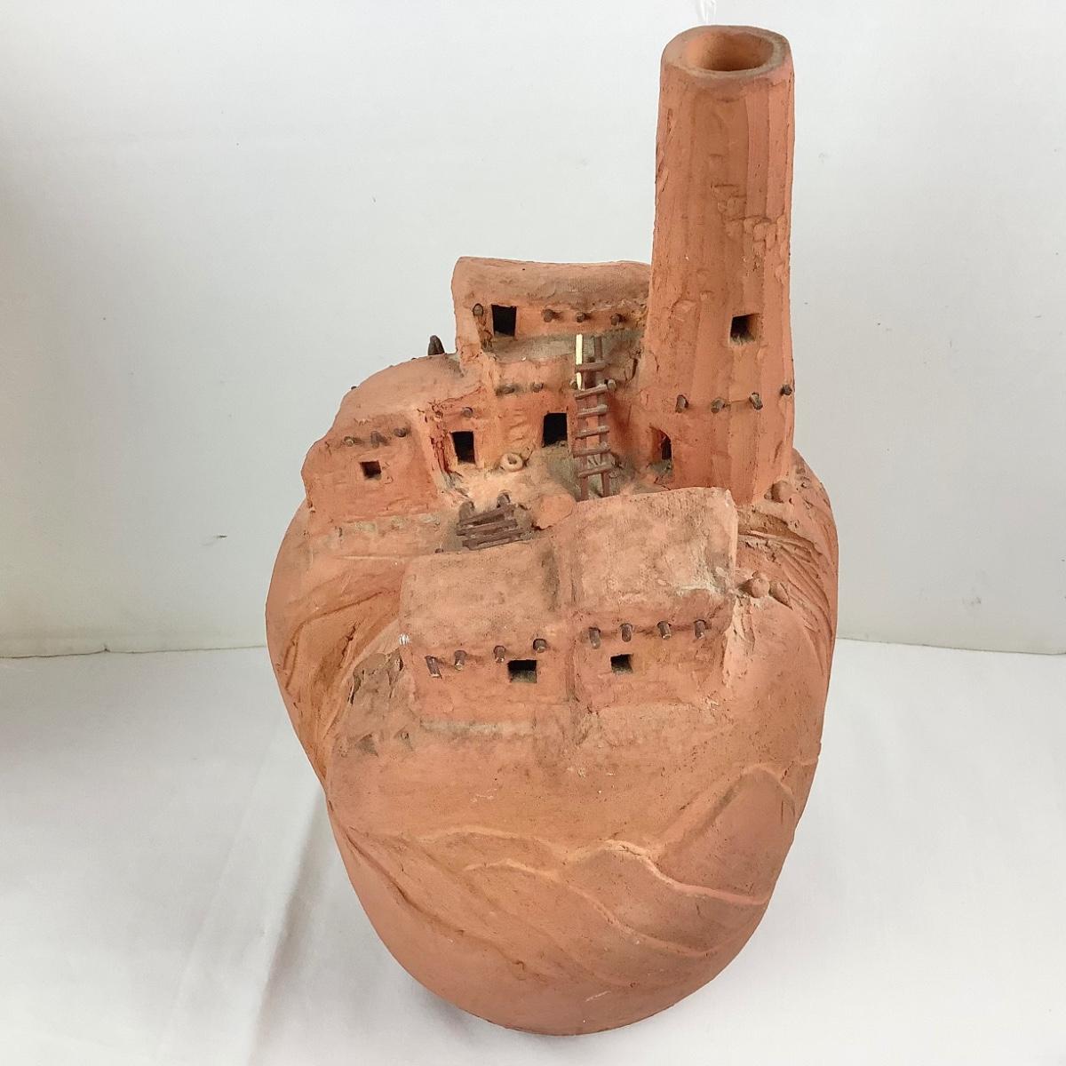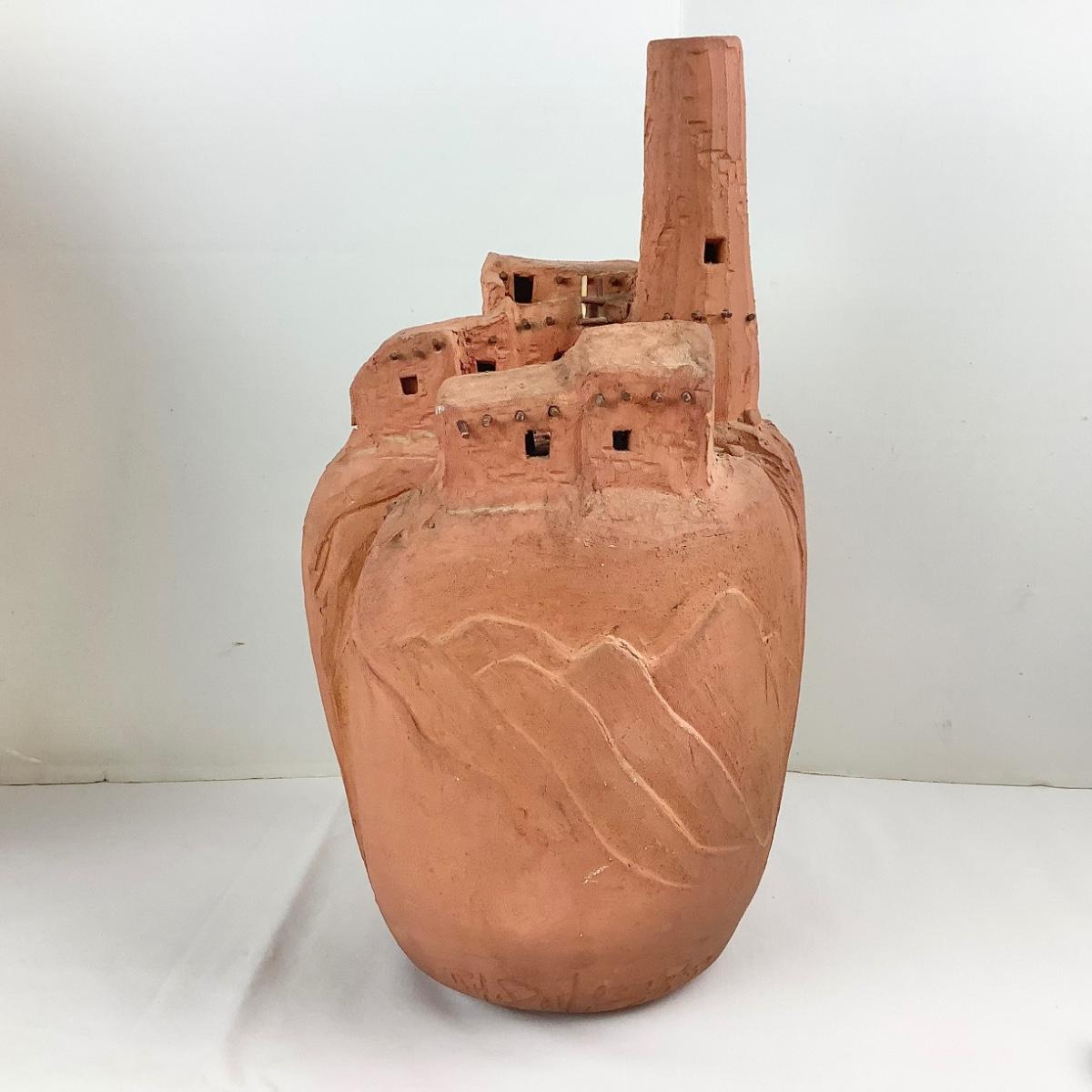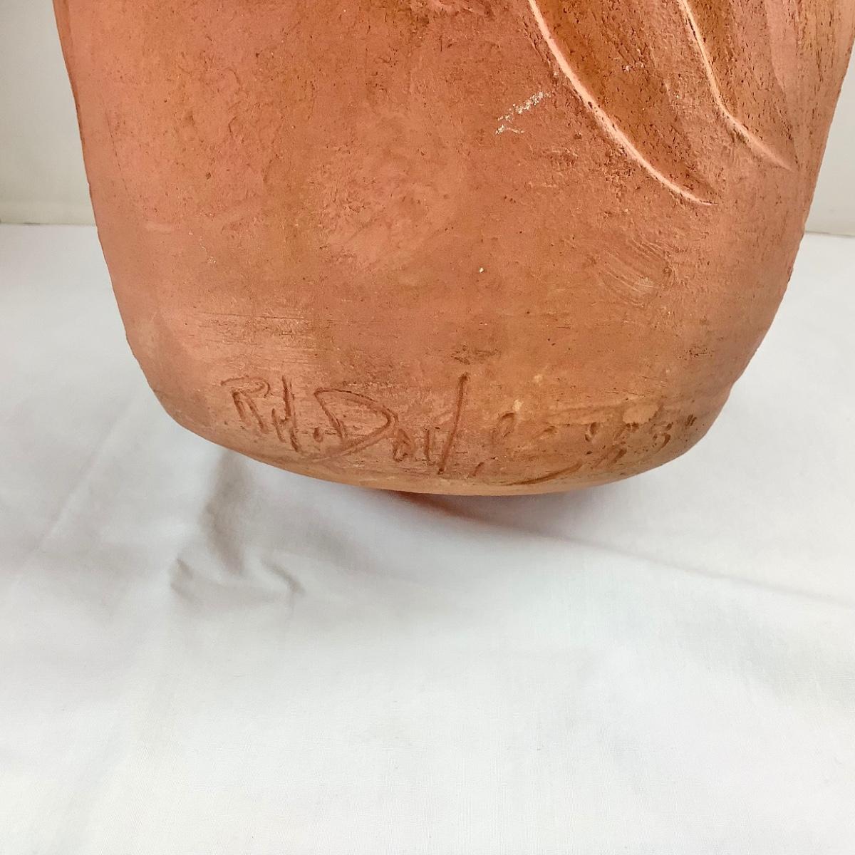 - Artisan Signed Terracotta Sculpture, measures 12.5” High x 7” Round