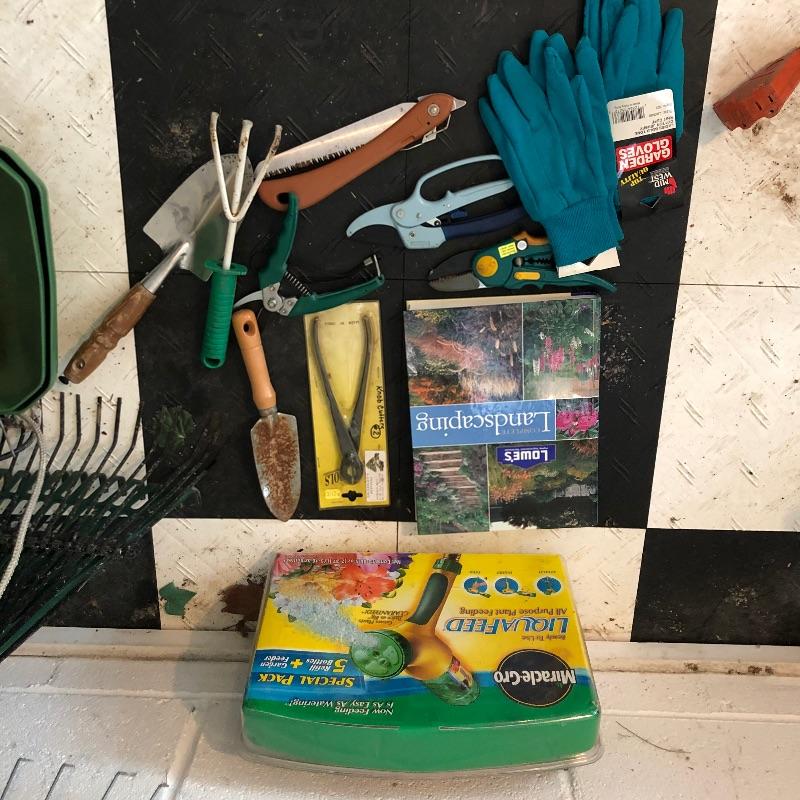 See images for everything that is included, but to name a few - Miracle Grow liquid feed, plant pots, pruners, collapsible leaf bags and much more.
