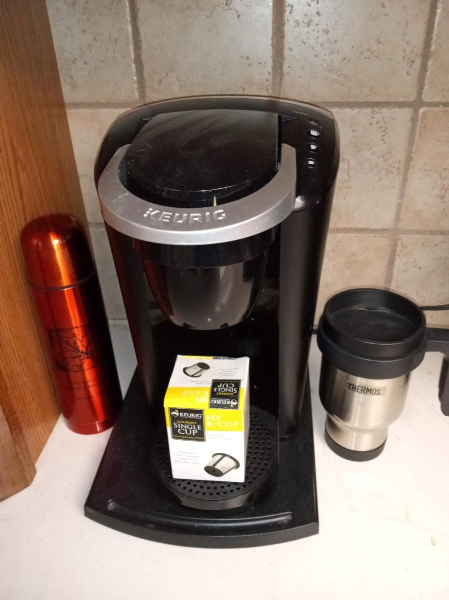 ALSO INCLUDES MY K-CUP AND A SLIDER SO YOU CAN PULL THE MAKER AWAY FROM THE WALL TO FILL WITH WATER