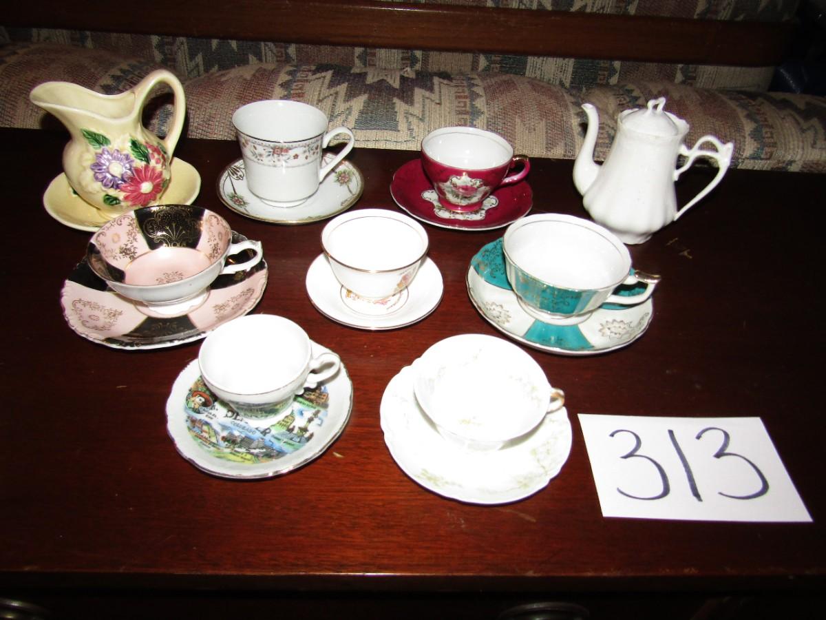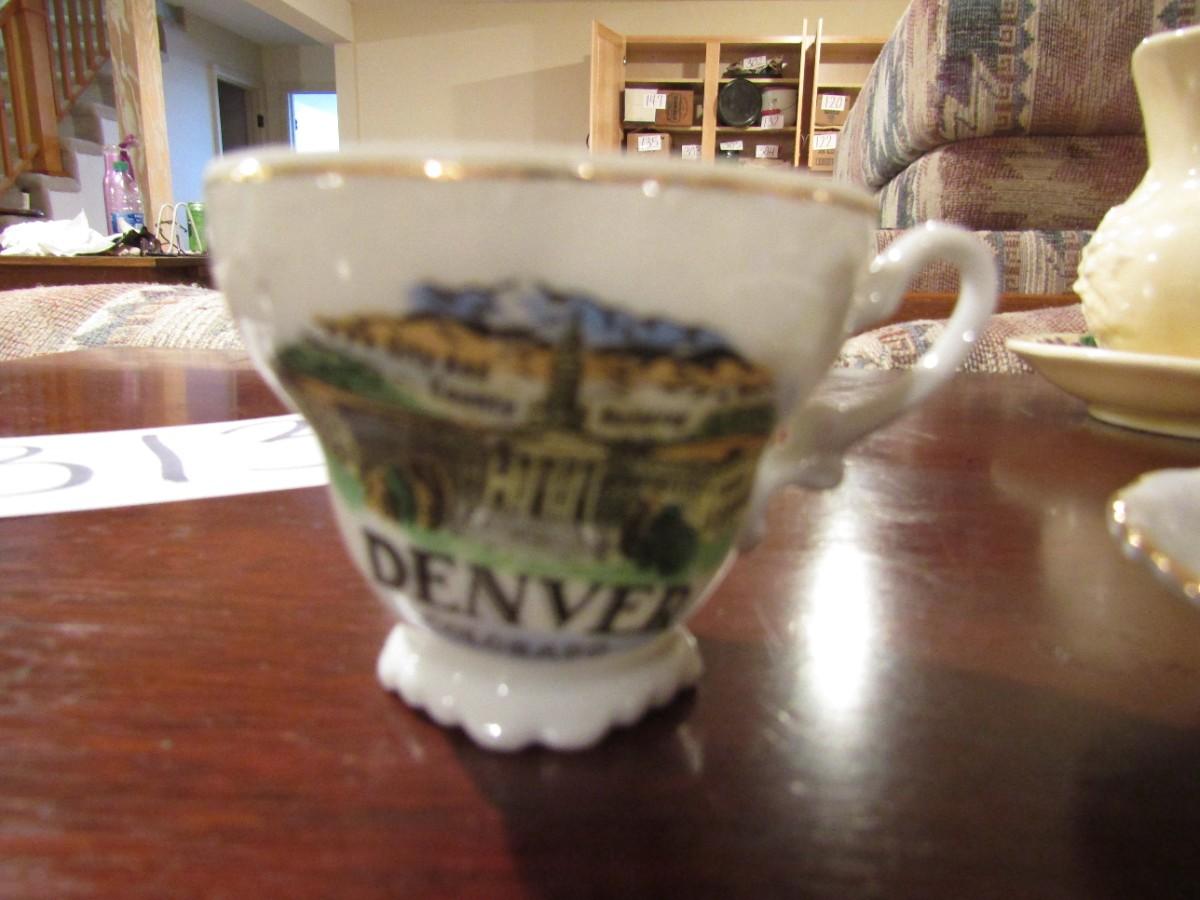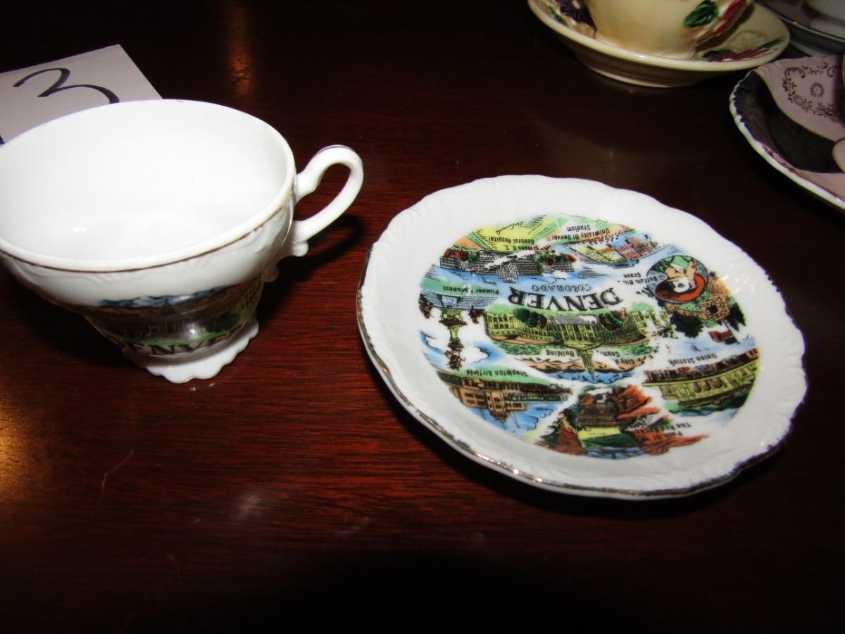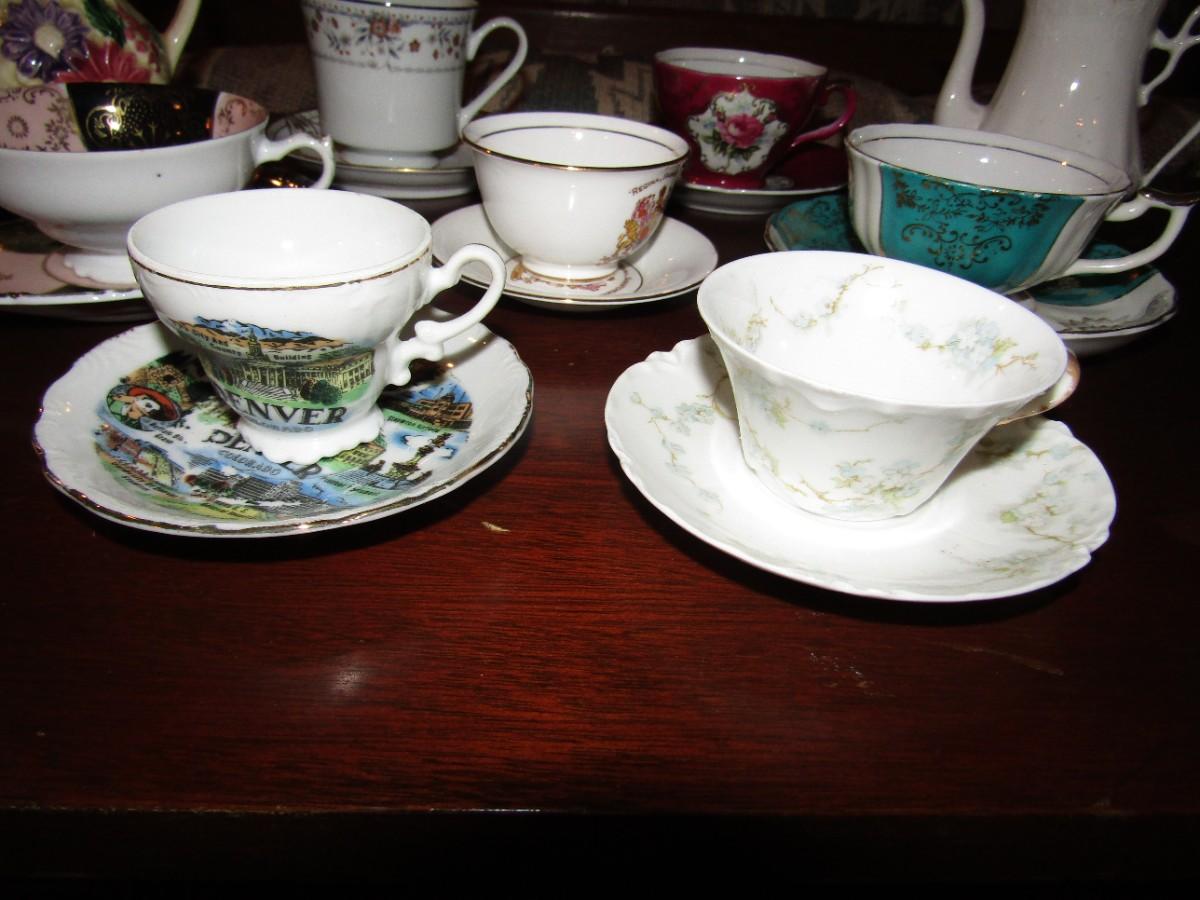 NICE VARIETY OF COLLECTIBLE TEACUPS AND SAUCERS. THERE'S EVEN ON FOR DENVER