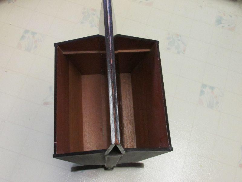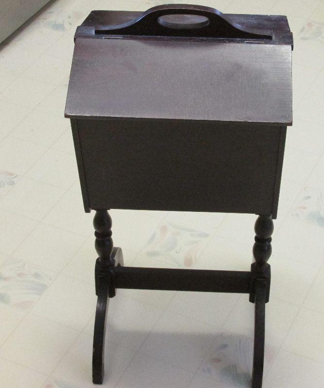 Vintage black wood sewing caddy. Lots of scratching on top as shown in photo.