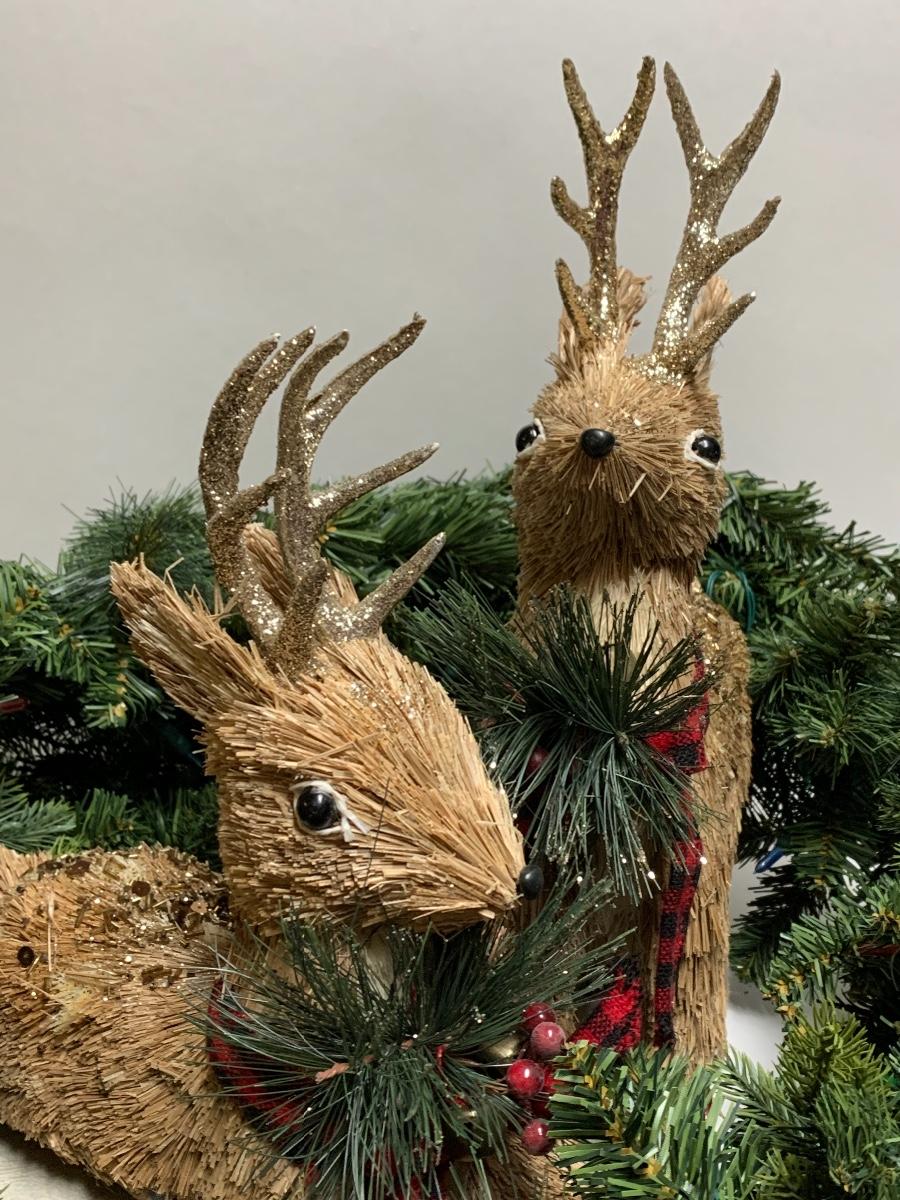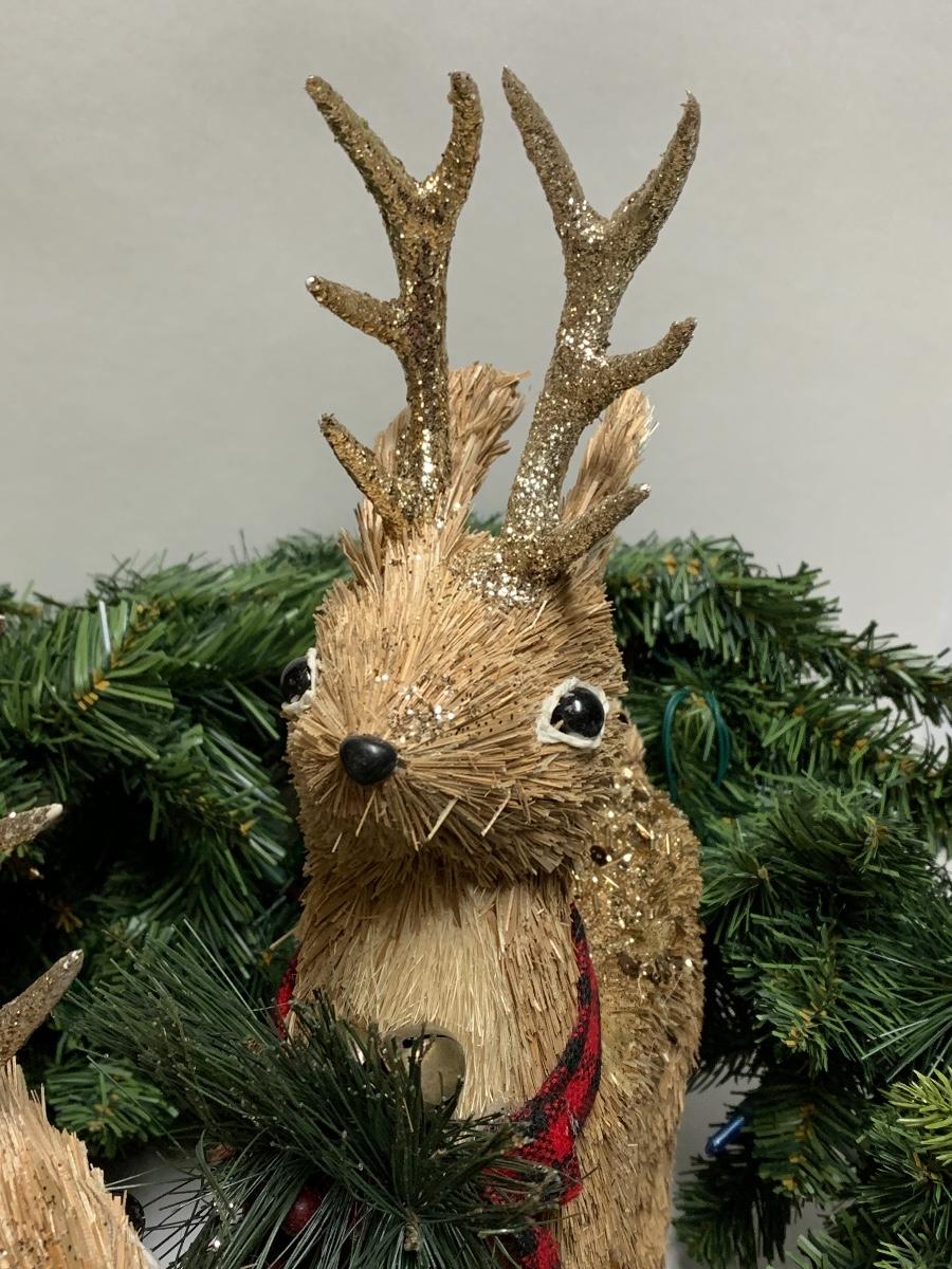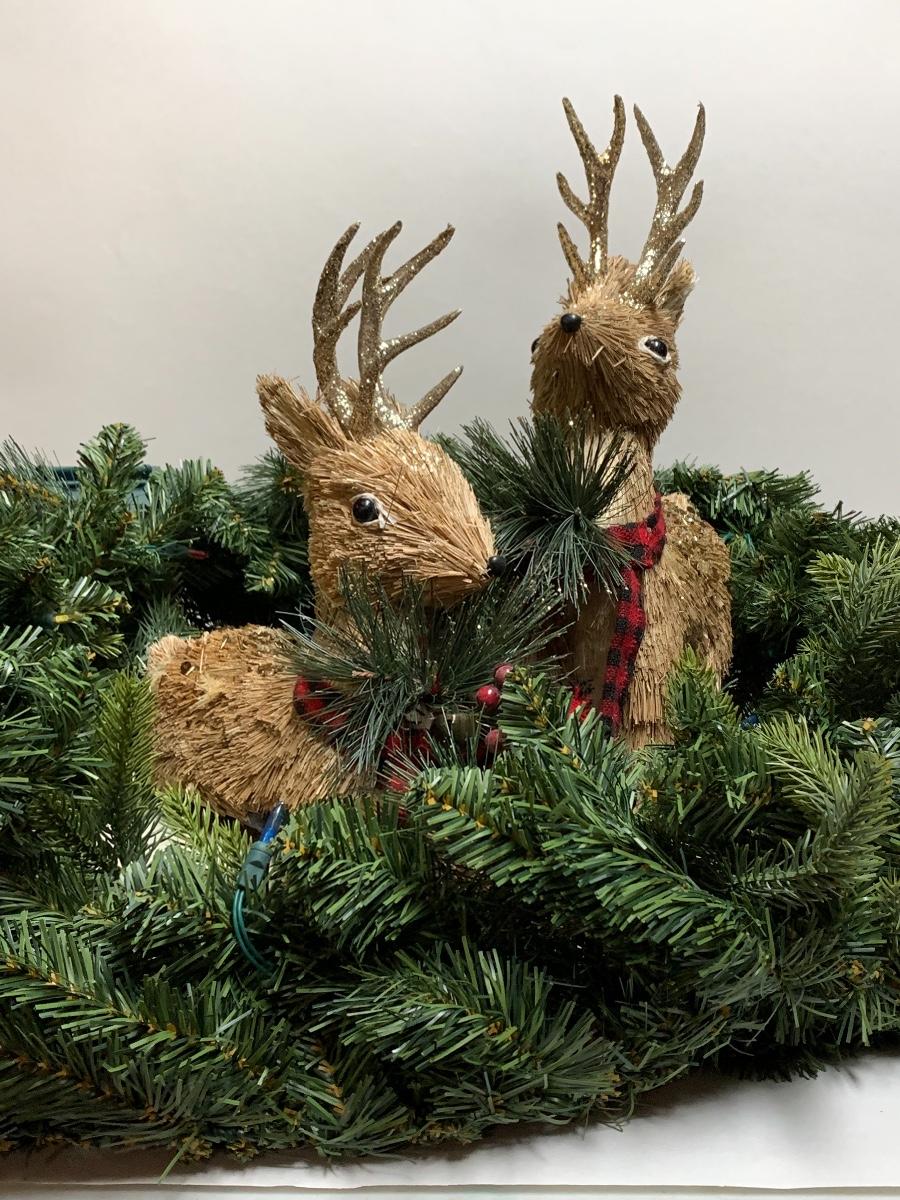 Untested battery operated garland and with pair of glistening sisal reindeer. New with boxes.