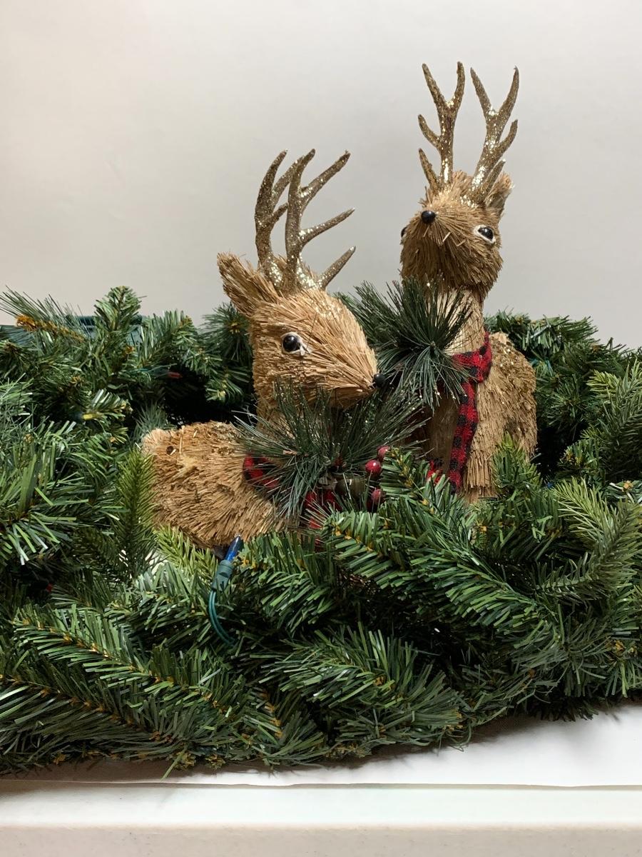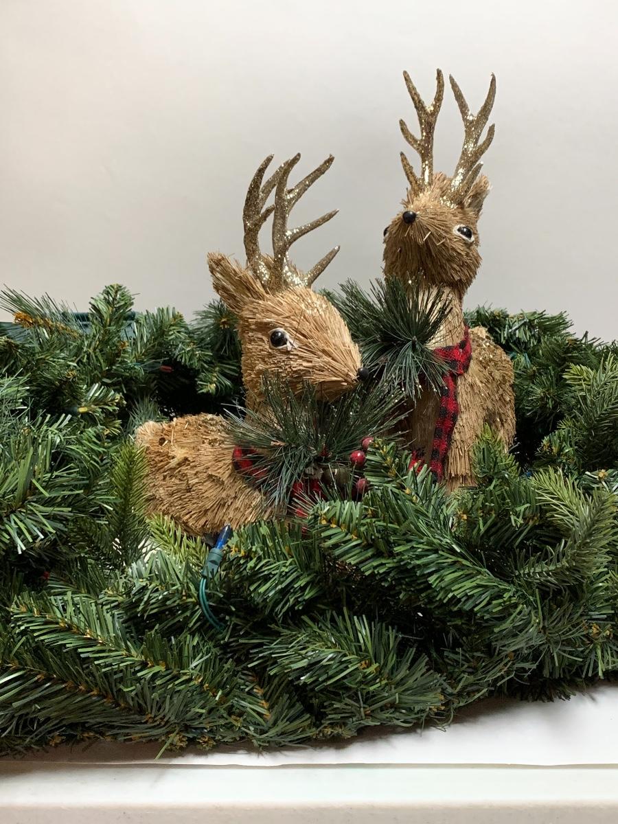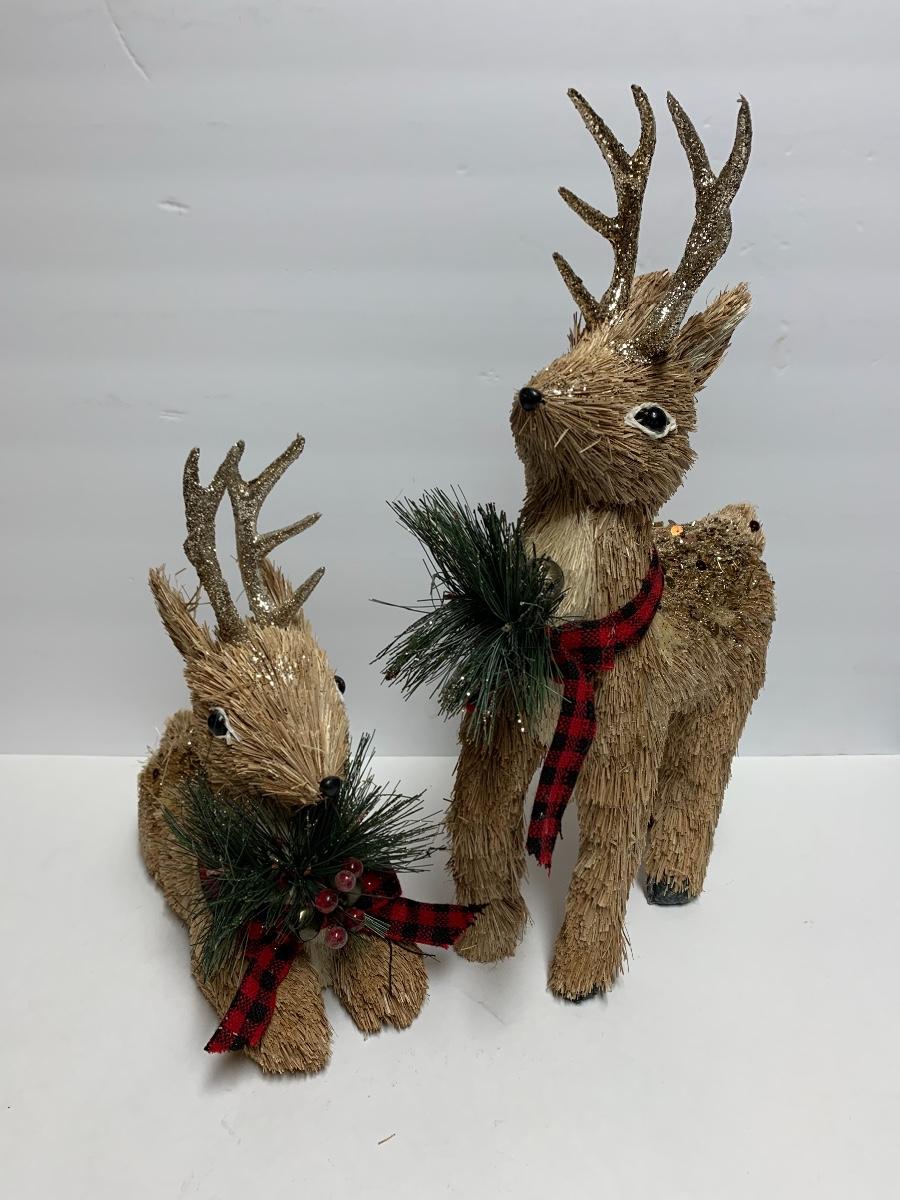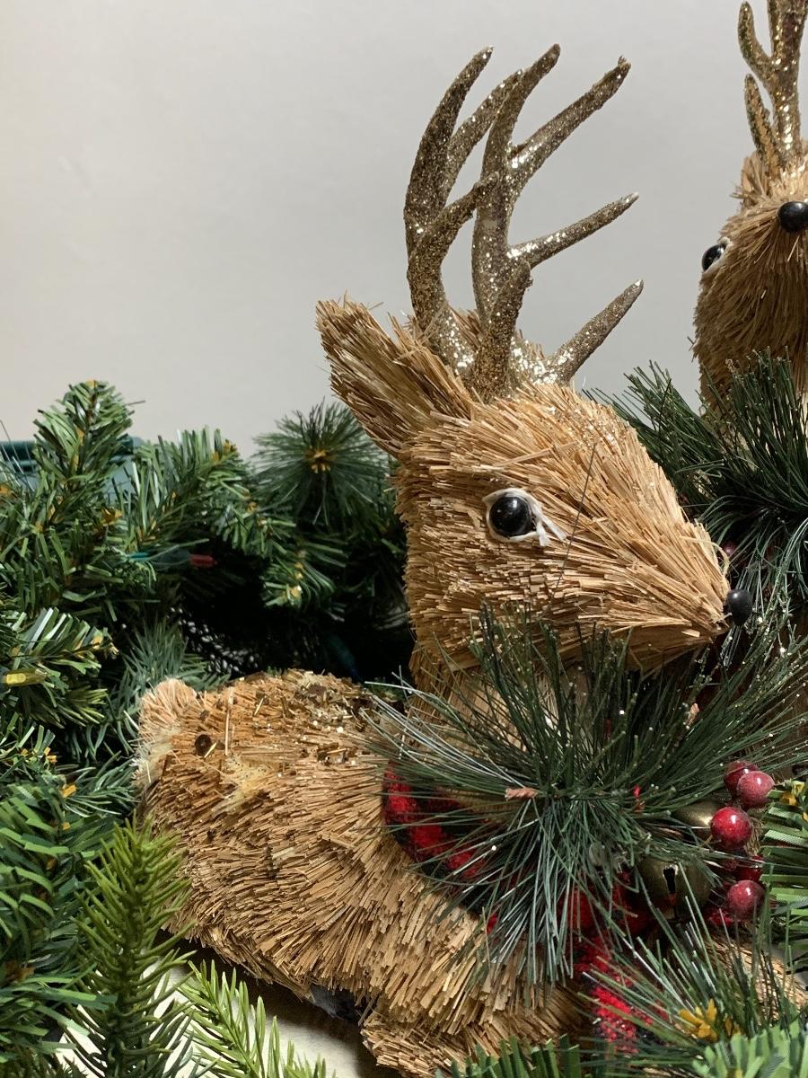 Untested battery operated garland and with pair of glistening sisal reindeer. New with boxes.