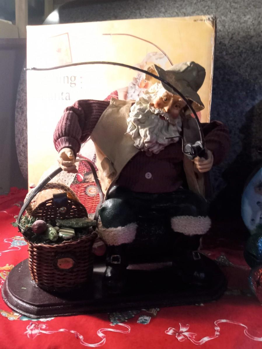 LOT 314 FISHING SANTA, BELL WREATH, METAL SNOWMAN CANDLE HOLDER AND MORE (HD)